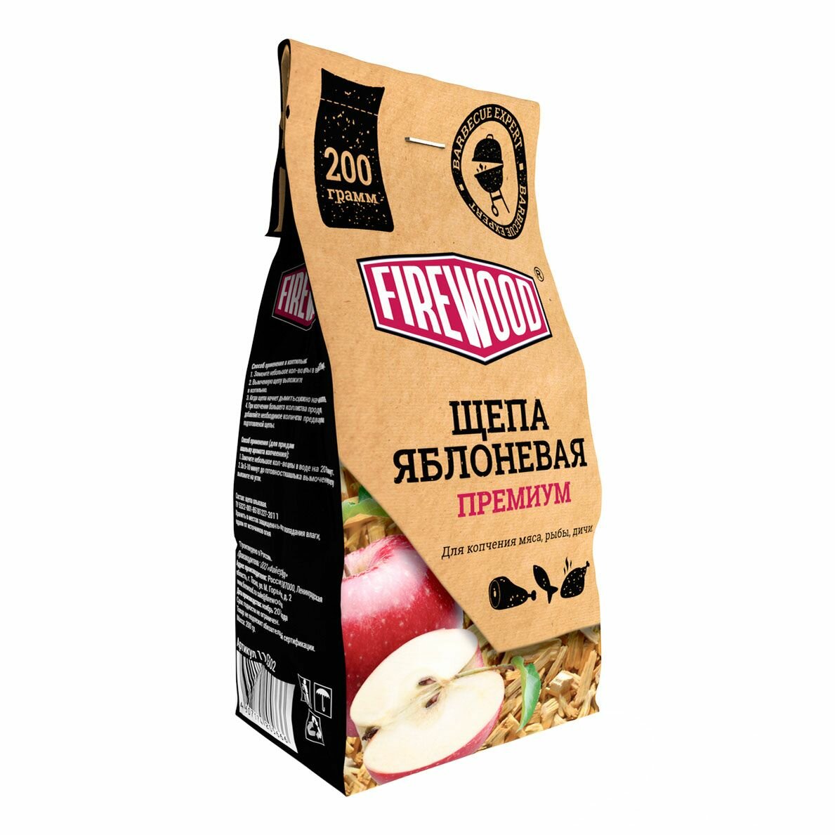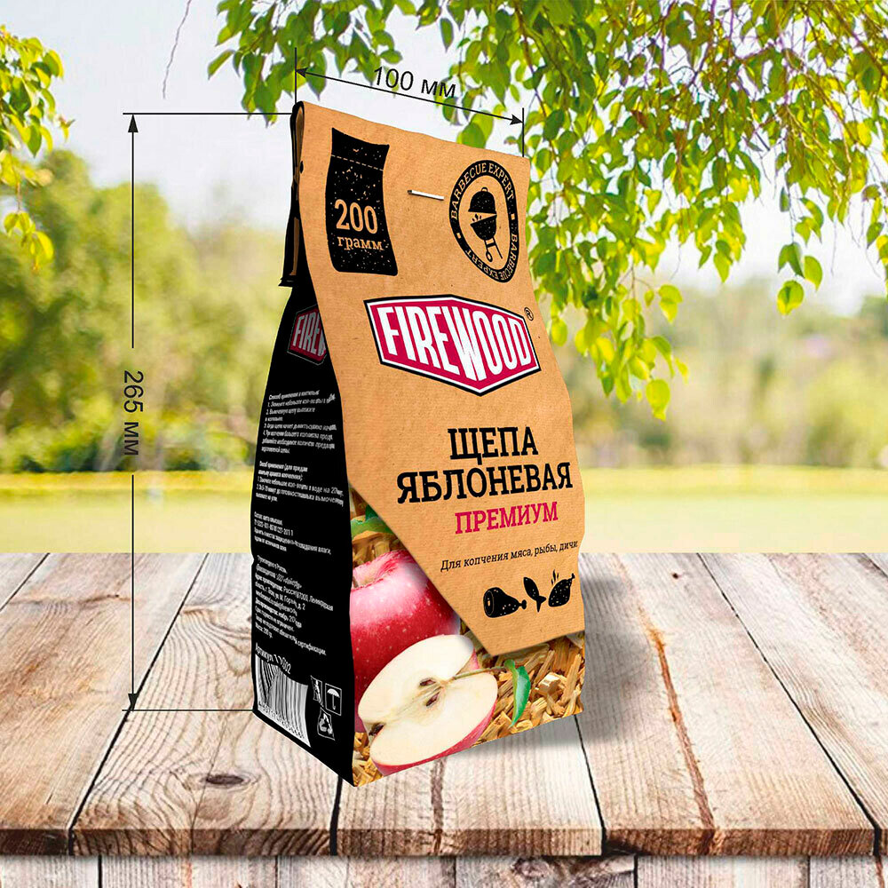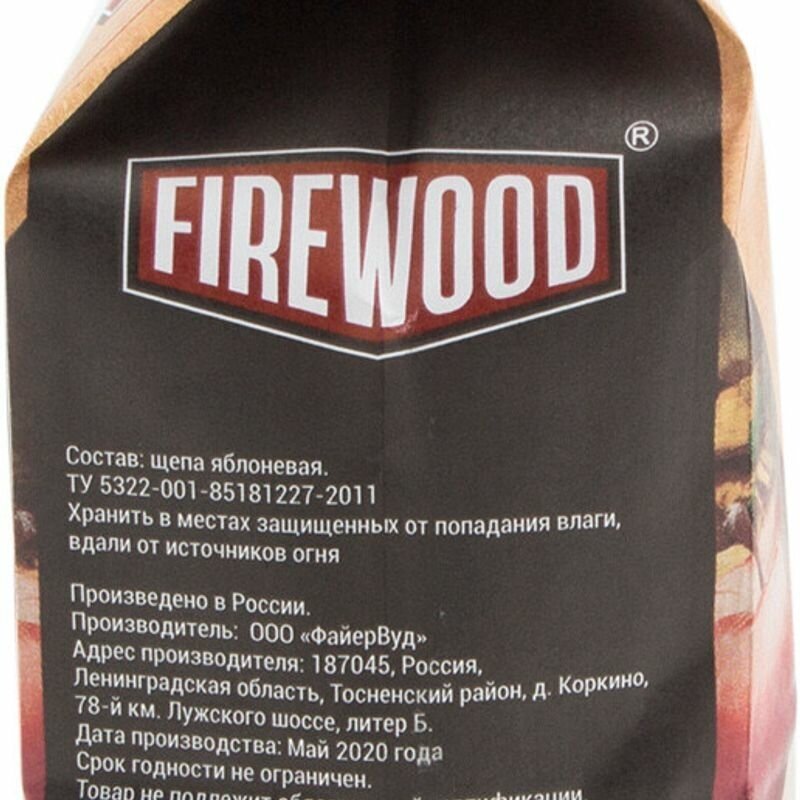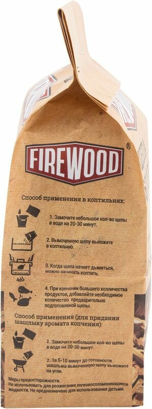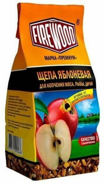 Щепа для копчения яблоневая под торговой маркой FireWood идеально подходит для копчения мяса и рыбы. При ее производстве не используются пропитки, сырьем для изготовления служит древесина строго определенного возраста и географии произрастания. Равномерность измельчения, особый режим просушки и использование высококачественного сырья гарантируют прекрасный результат вне зависимости от типа коптильни.