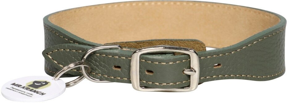 Mr.Kranch ошейник для собак из натуральной кожи с QR-адресником (25-30 см. Оливковый)