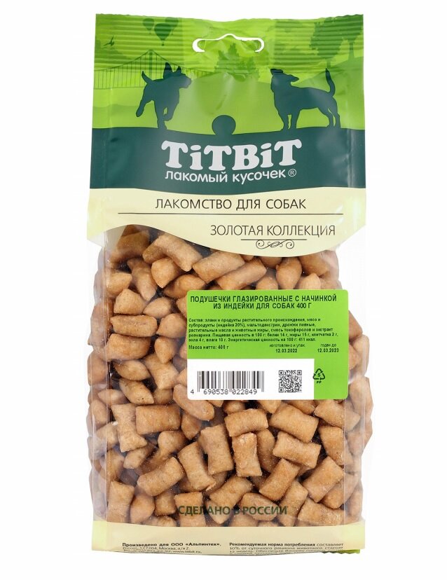 TiTBiT Подушечки глазированные с начинкой для собак Золотая коллекция (Индейка 400 г.)
