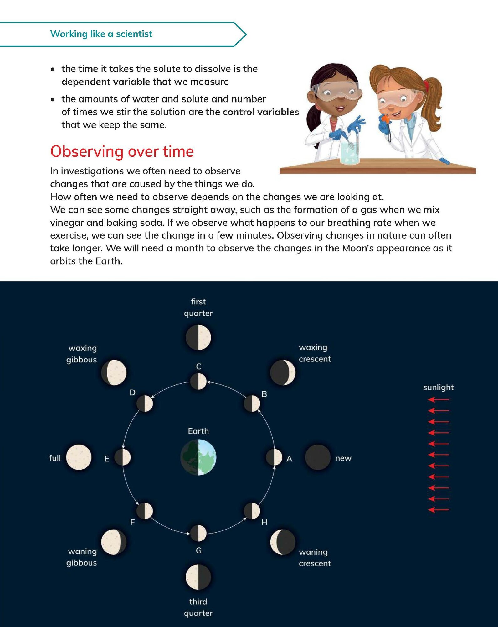 Учебное пособие включает в себя практические занятия, направленные на развитие мышления учащихся и навыков научной работы. Ученики узнают, как работают наши мышцы, обнаружат разницу между жидкостями и твердыми телами и что вызывает извержения вулканов. Каждое занятие заканчивается проектом, например созданием презентации о фермах по разведению червей, чтобы помочь учащимся свести воедино то, что они узнали, и понять, как темы соотносятся с реальным миром.