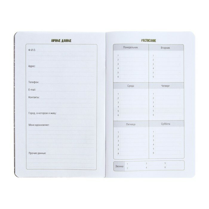Внутренний блок: офсет 100% белизны, плотностью 65 г/м2, печать в две краски