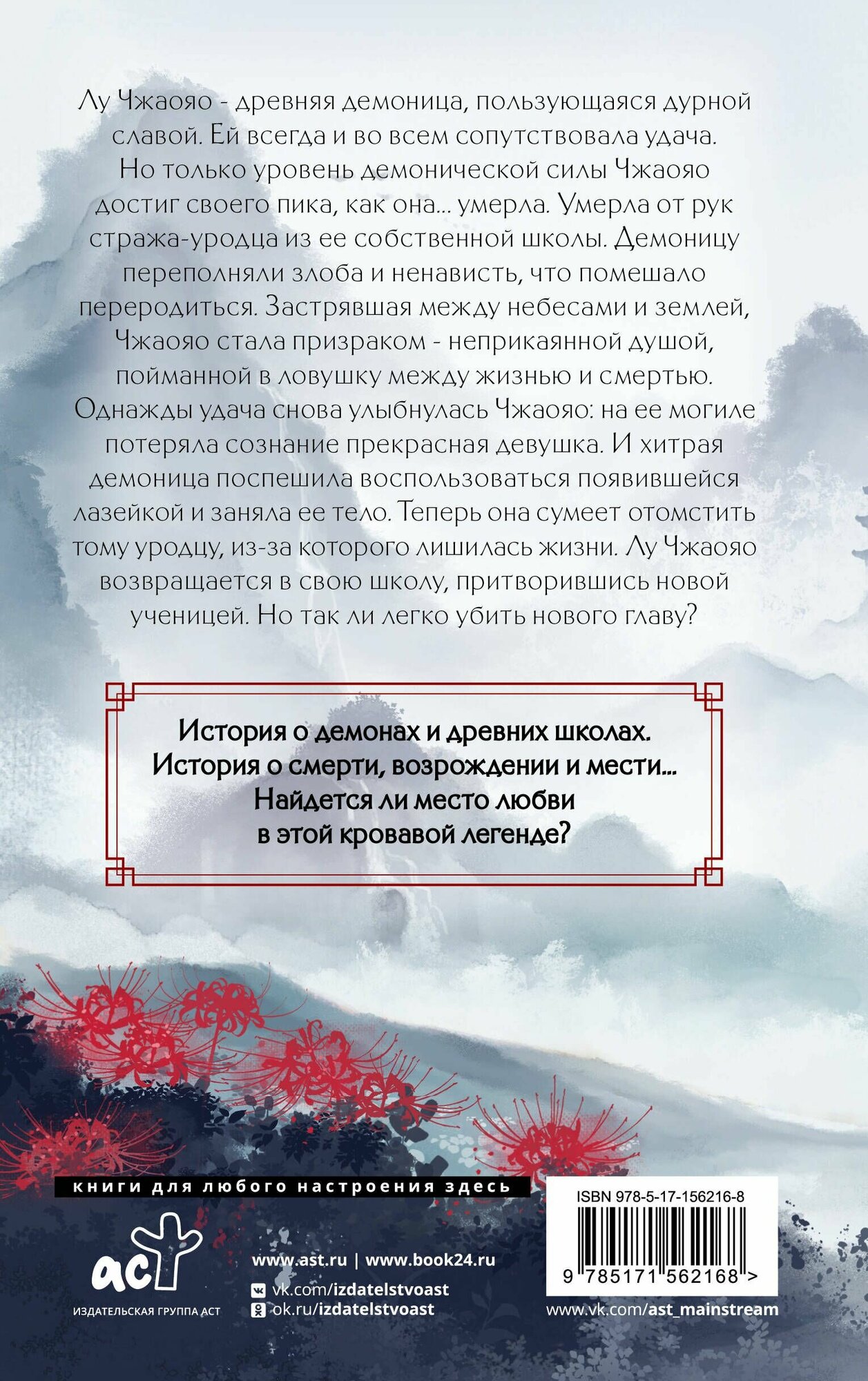 Лу Чжаояо — древняя демоница, пользующаяся дурной славой. Ей всегда и во всем сопутствовала удача. Но только уровень демонической силы Чжаояо достиг своего пика, как она... умерла. Умерла от рук стража-уродца из ее собственной школы. Демоницу переполняли злоба и ненависть, что помешало переродиться. Застрявшая между небесами и землей, Чжаояо стала призраком — неприкаянной душой, пойманной в ловушку между жизнью и смертью.Однажды удача снова улыбнулась Чжаояо: на ее могиле потеряла сознание прекрасная девушка. И хитрая демоница поспешила воспользоваться появившийся лазейкой и заняла ее тело. Теперь она сумеет отомстить тому уродцу, из-за которого лишилась жизни. Лу Чжаояо возвращается в свою школу, притворившись новой ученицей. Но так ли легко убить нового главу?История о демонах и древних школах. История о смерти, возрождении и мести... Найдется ли место любви в этой кровавой легенде?*Подарок при покупке каждой книги: коллекционная закладка. Количество подарков ограничено.