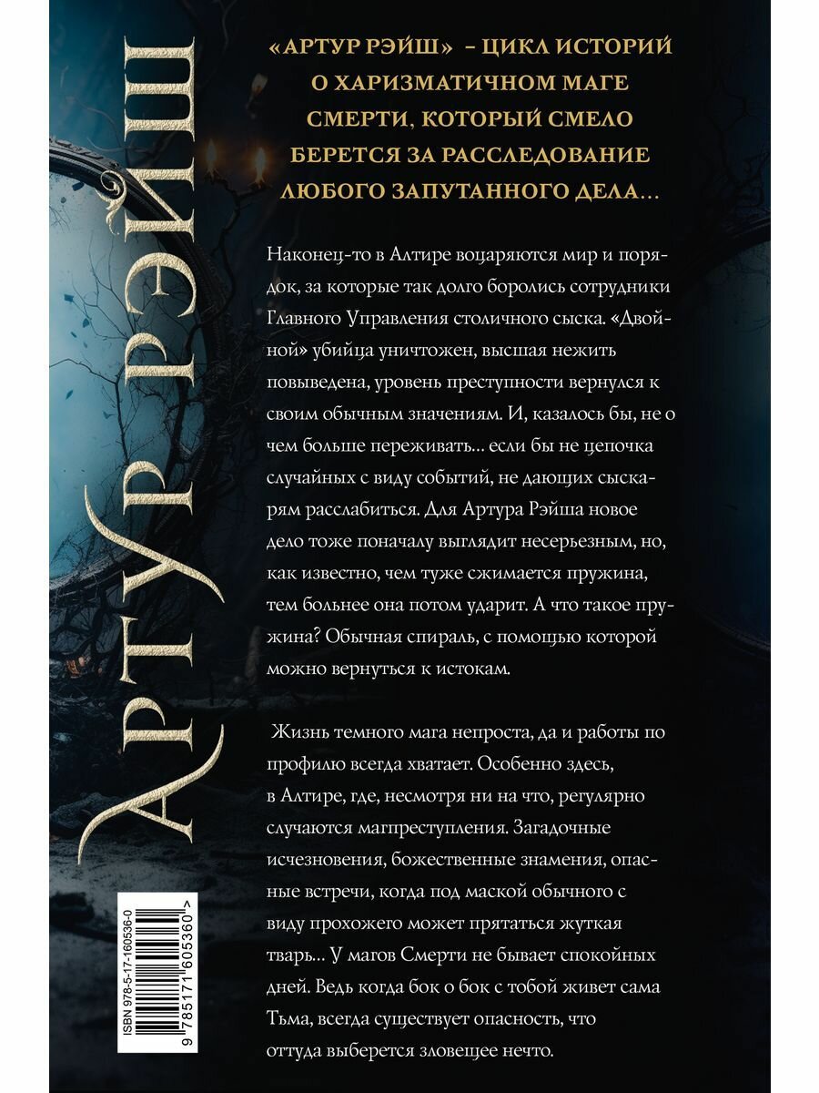 Наконец-то в Алтире воцаряются мир и порядок, за которые так долго боролись сотрудники Главного Управления столичного сыска. "Двойной" убийца уничтожен, высшая нежить повыведена, уровень преступности вернулся к своим обычным значениям. И, казалось бы, не о чем больше переживать… если бы не цепочка случайных с виду событий, не дающих сыскарям расслабиться. Для Артура Рэйша новое дело тоже поначалу выглядит несерьезным, но, как известно, чем туже сжимается пружина, тем больнее она потом ударит. А что такое пружина? Обычная спираль, с помощью которой можно вернуться к истокам.