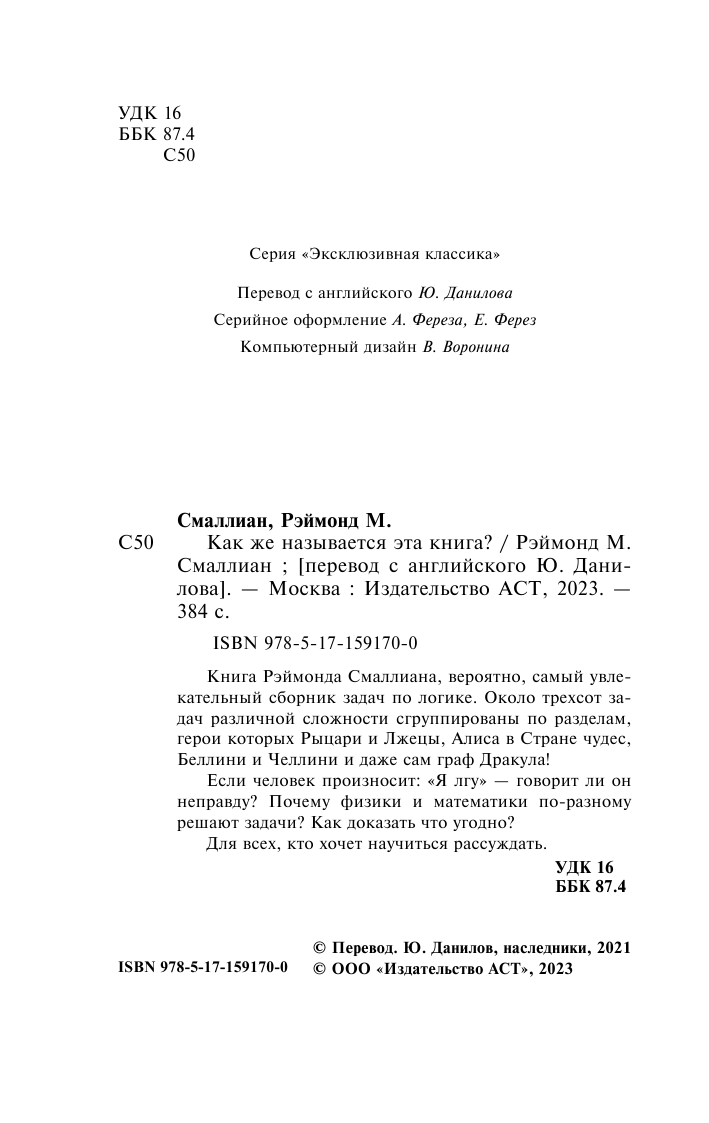 Как же называется эта книга? (Смаллиан Рэймонд М.); ООО "Издательство Астрель", 2023