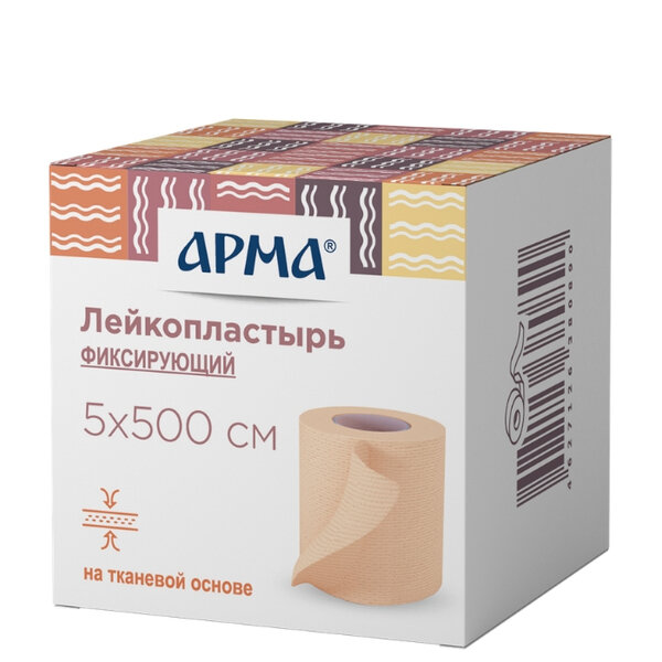 Лейкопластырь фиксирующий тканевый телесный Арма 5х500см ООО Бергус (2429882)