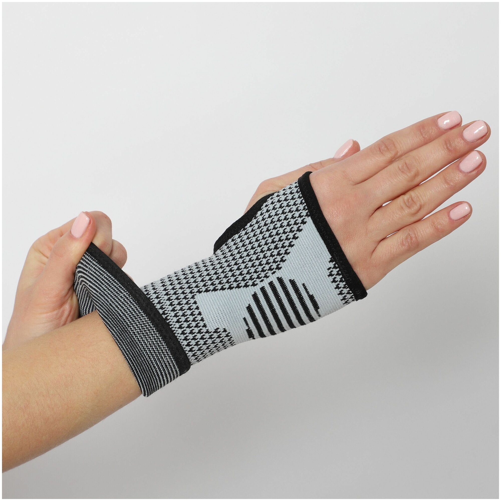Бандаж для лучезапястного сустава - "Крейт".В разм. таблице - обхват запястья.Как правильно сделать замер: обхват запястья измеряется по лучезапястному суставу, через головку локтевой кости («косточка на лучезапястном суставе»). Более детально в схеме на фото.Ортопедический эластичный бандаж на запястье и кисть руки обеспечивает комфортную фиксацию, стабилизацию и компрессию лучезапястного сустава. Ускоряет процесс реабилитации после гипсовых повязок, травм и операций. Уменьшает болевые ощущения, а также защищает сустав от травм и повреждений. Стимулирует процессы восстановления мышц и связок в период реабилитации после травм и операций. Идеально подходит для профилактики травм и растяжений при интенсивных физических нагрузках и занятий спортом. Фиксатор лучезапястного сустава сделан по бесшовной технологии. Анатомическая вязка позволяет правильно распределить компрессию. Обеспечивает оптимальное облегание, не нарушая микроциркуляцию. Бандаж плотно облегает лучезапястный сустав и не смещается при движении. Приятно прилегает к телу, не вызывая дискомфорта. Ортез на запястье имеет вырез под большой палец. Длина 17,5см. Анатомичная форма и специальный воздухопроницаемый материал гарантируют идеальную посадку на руке. Удобная неразъемная конструкция легко надевается, не ограничивает движения в суставе и длительное время сохраняет форму. Уникальная конструкция позволяет легко использовать фиксатор в повседневной жизни при занятиях спортом, на даче и на работе. Суппорт запястья подходит и мужчинам, и женщинам. Универсальный: для правой и левой руки. Имеет регистрационное удостоверение, как медицинское изделие.