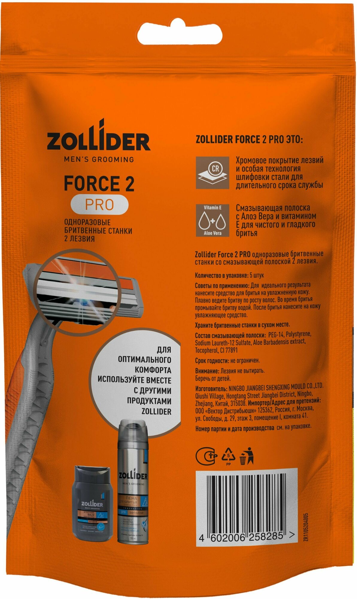 Бритвенные станки мужские Zollider Force 2 Pro одноразовые с двойными лезвиями 4 + 1 шт