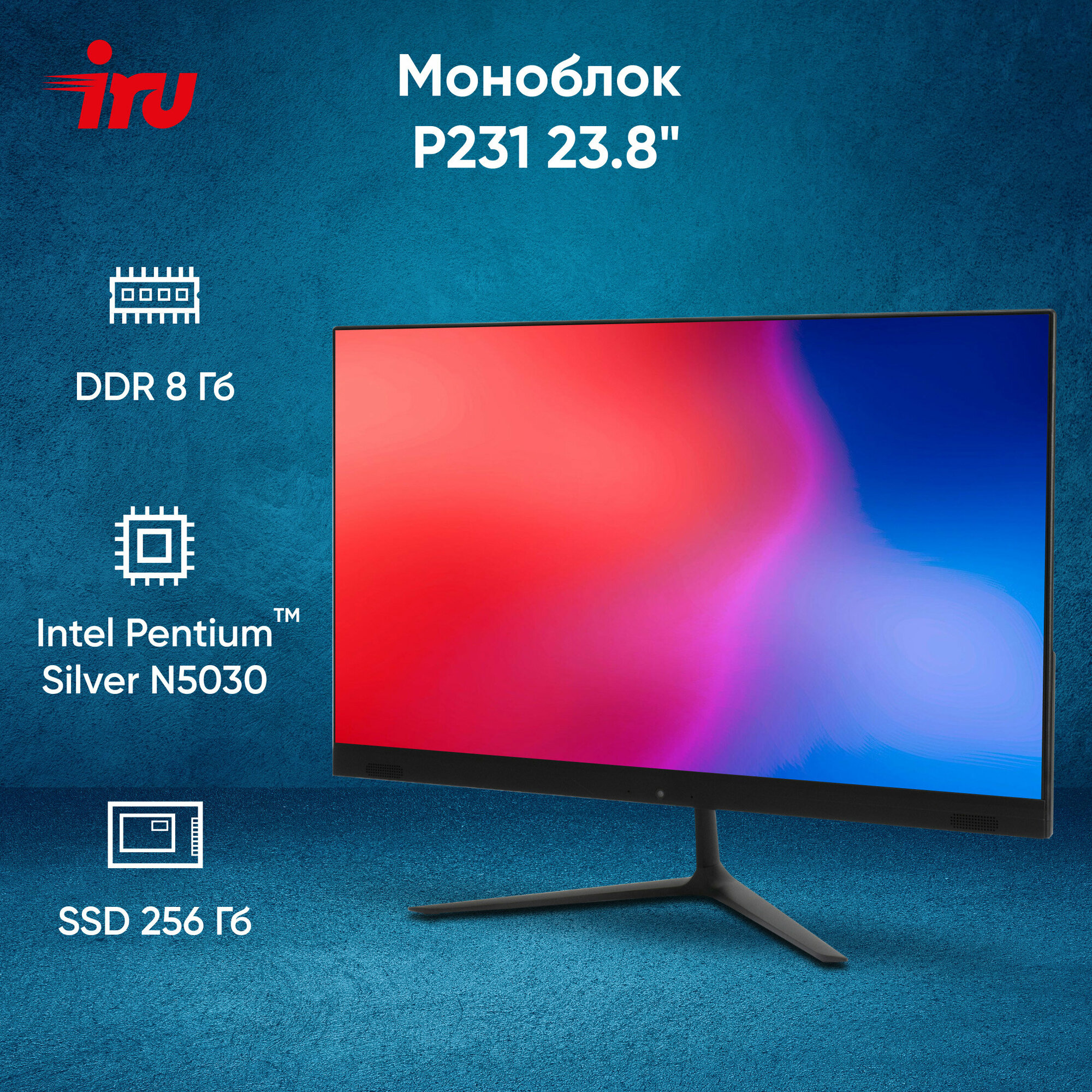 Моноблок 23.8" iRu P231 1920 x 1080 Intel Pentium-N5030 8Gb SSD 256 Gb Intel UHD Graphics 605 Windows 11 Professional черный 1971911 1971911