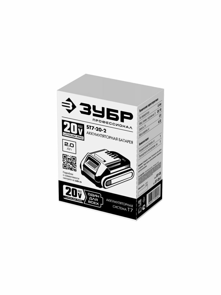 Аккумуляторная батарея Профессионал (ST7-20-2) ЗУБР T7 20 В 2.0 А·ч