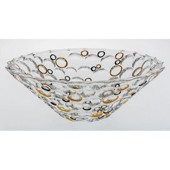 Ваза для фруктов 30 см Bohemia Jihlava "Lisboa /Золотые и черные кольца" хрусталь Йиглава - прекрасный выбор для тех, кто ценит качество. Основной цвет прозрачный, форма lisboa, декор с золотом. Продается поштучно. Товар выполнен из хрусталя, произведен чешской компанией Bohemia Jihlava.