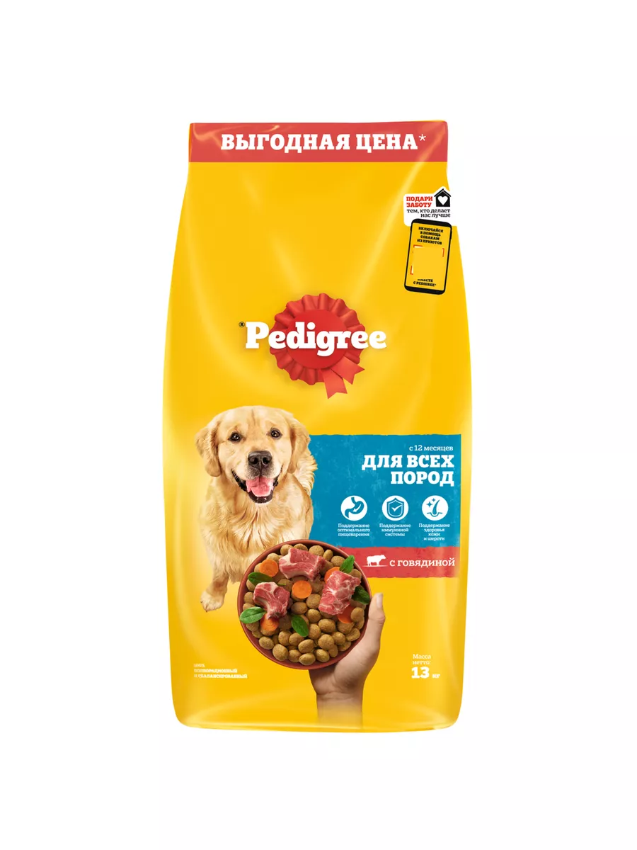 Корм Pedigree для взрослых собак, всех пород говядина 13 кг