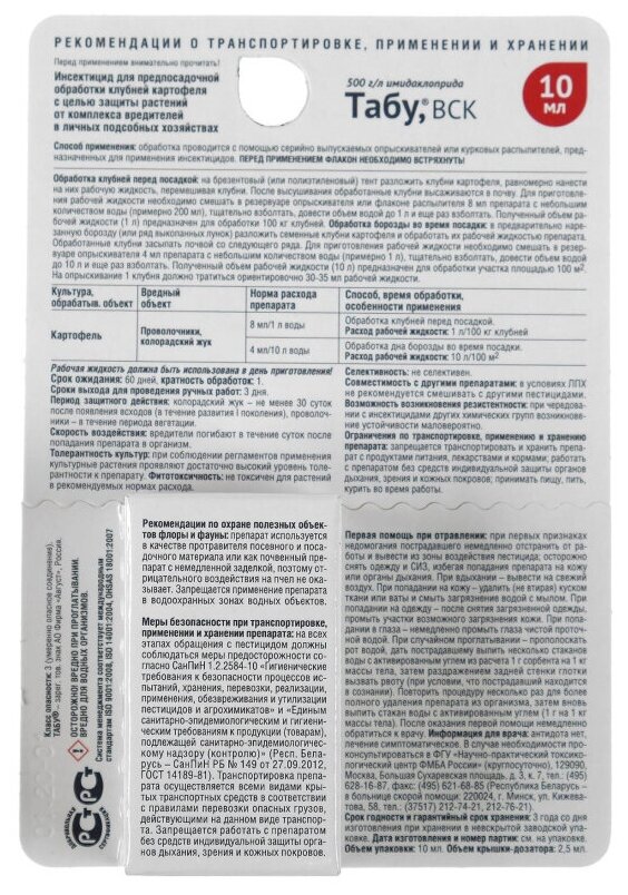 - Табу - протравитель клубней картофеля от колорадского жука и проволочника.