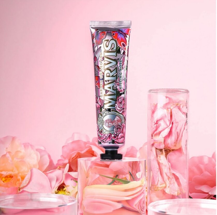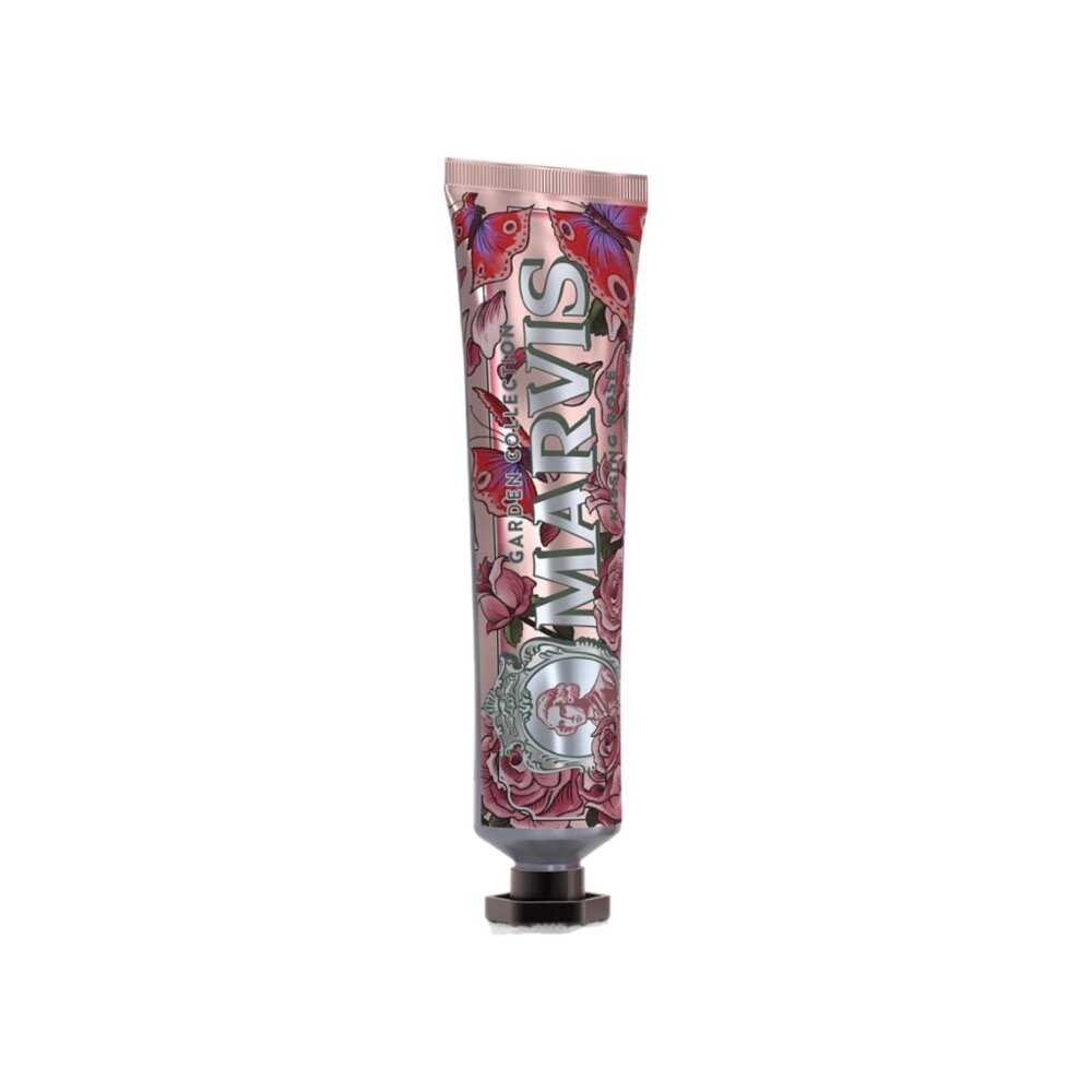 Кремообразная зубная паста Marvis предназначена для тщательной очистки эмали от налета, а также для мягкого отбеливания и устранения всех причин неприятного запаха изо рта. Косметическая компания Ludovico Martelli S.r.l была создана в 1908 году и производила косметику премиум-класса. С 1950 года в ассортименте компании появилась линейка зубных паст и щеток. Пасты производились для курильщиков и наделены сильным освежающим вкусом для обеспечения свежего дыхания. Абразивами в пастах Marvis выступают гидроксид алюминия и диоксид кремния, которые тщательно очищают образовавшийся налет и полируют эмаль, не повреждая ее. Компоненты пасты, входящие в состав, позволяют быстро и эффективно отбелить эмаль от пятен и потемнений, что делает ее незаменимым помощником для курильщиков и любителей кофе. Разнообразные вкусы паст позволяют изменить подход к чистке зубов, сделать процесс интересным и красочным. Marvis - это возвышенный вкус, вдохновленный миром авторской парфюмерии. Романтический аромат, наполняющий улыбку благоухающими нотами болгарской розы и свежим оттенком мяты. Дизайн упаковок в ретро стиле отражен в упаковках и тюбиках паст, чем покоряет с первого взгляда и увеличивает привязанность покупателей к продукции. Тюбик выполнен из экологичного алюминия, который является легко перерабатываемым сырьем.