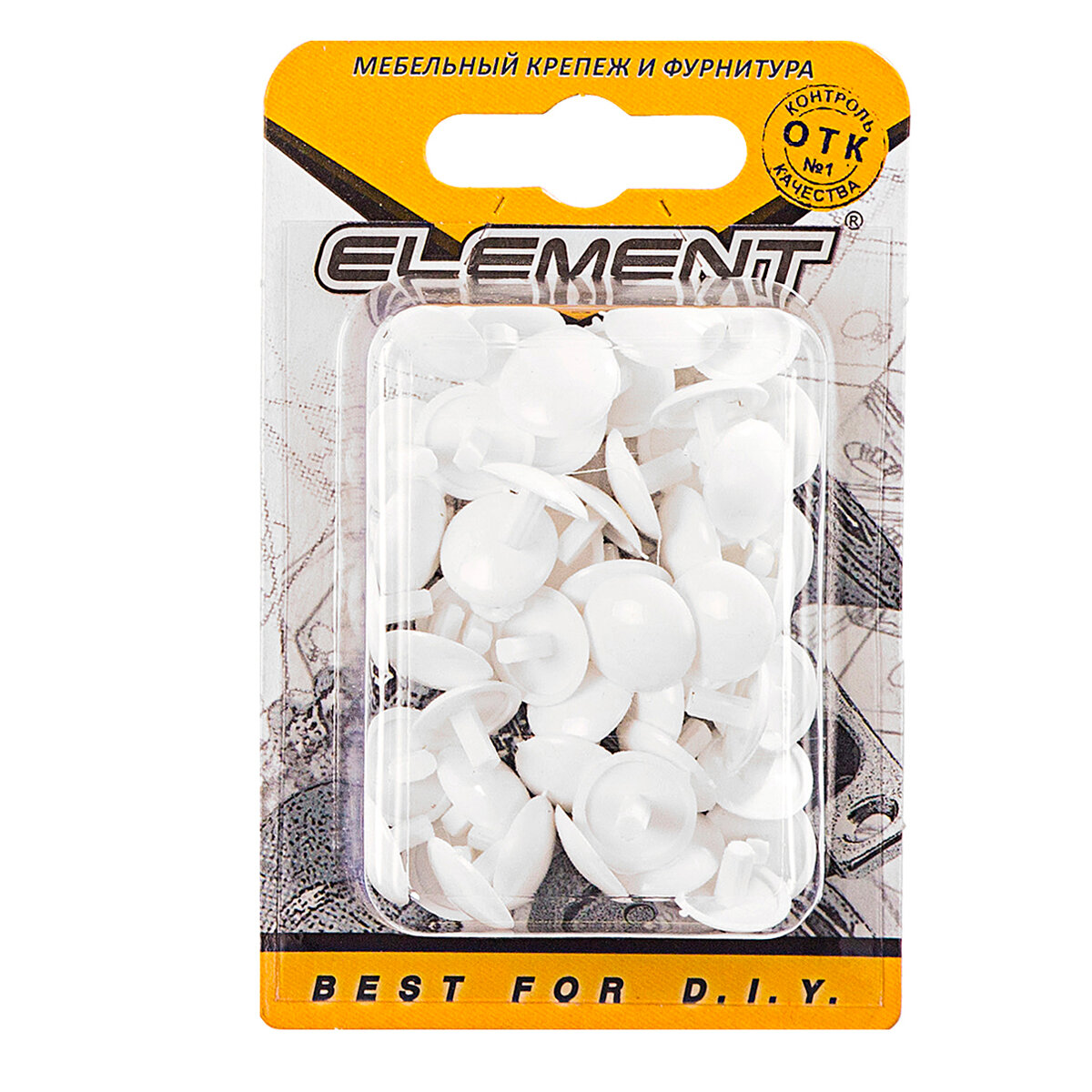 Заглушки на мебельную стяжку 5 мм белые 50 штук Element