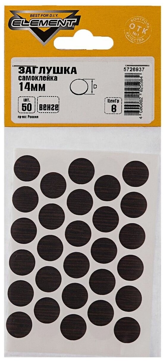 Заглушки самоклейки Element 14мм венге 50 шт другие бренды