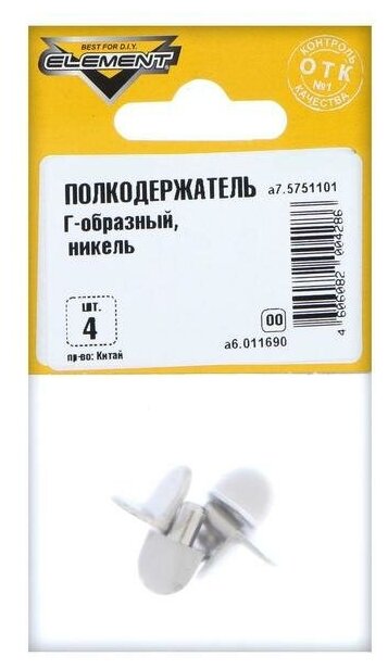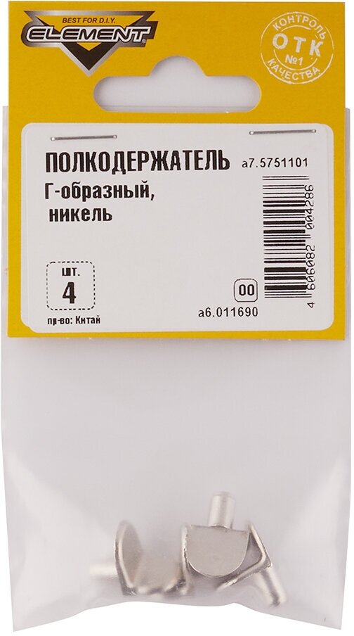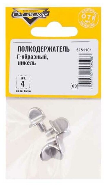Полкодержатель Г-образный никель 4 штуки Element 011690