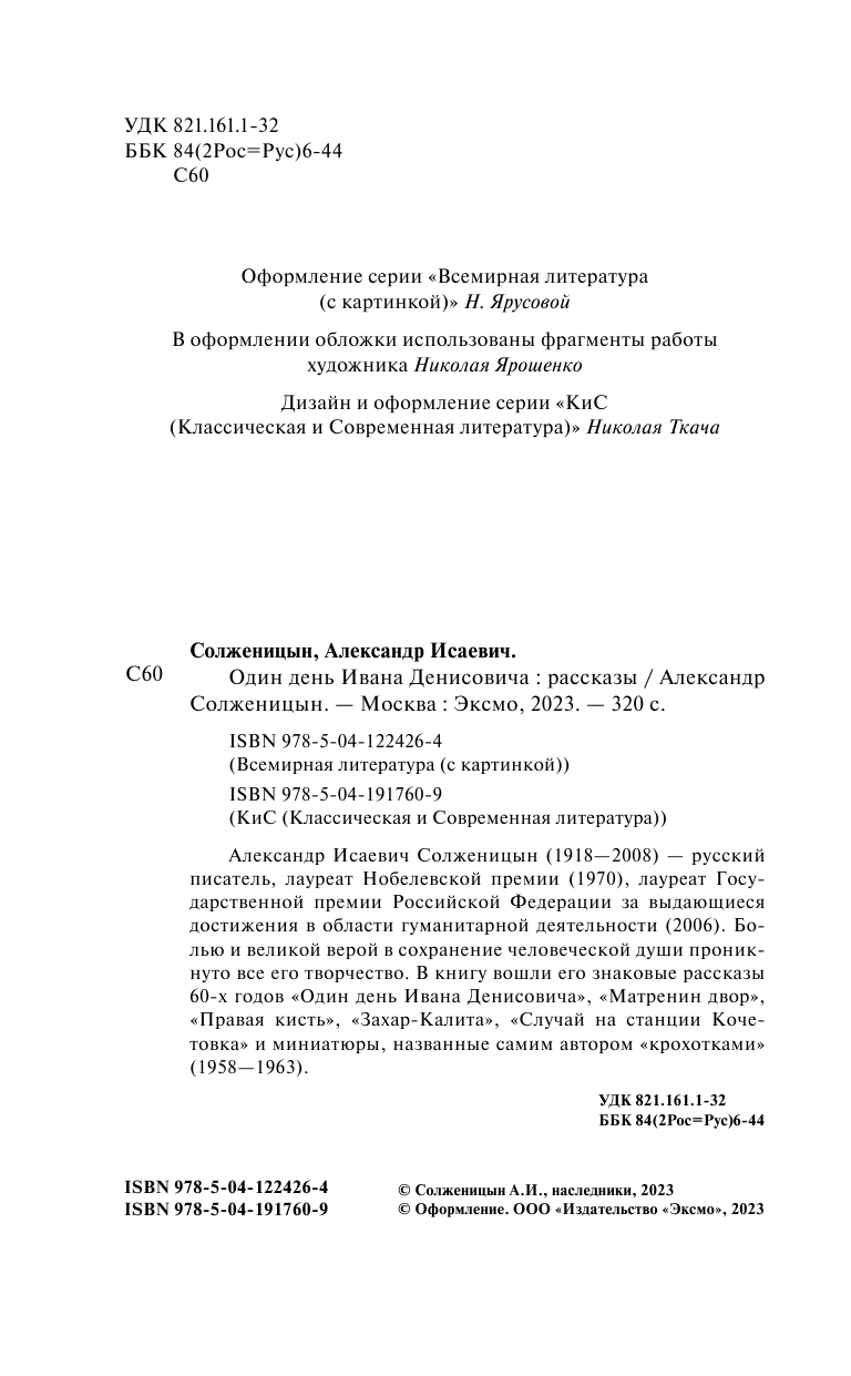 Один день Ивана Денисовича. Рассказы (Солженицын Александр Исаевич); ООО "Издательство "Эксмо", 2023