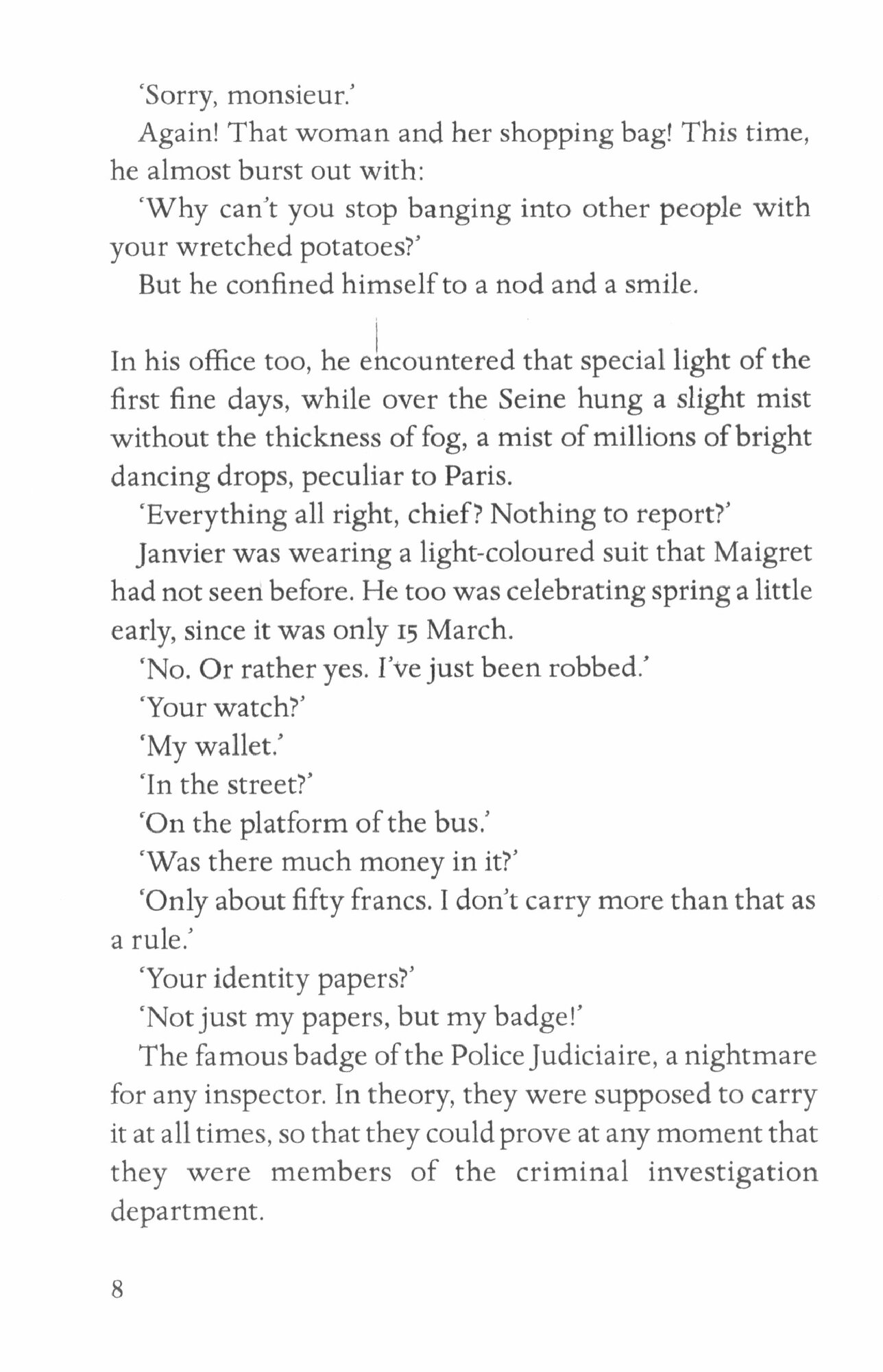 'Maigret would have found it difficult to formulate an opinion of him. Intelligent, yes, certainly, and highly so, as far as one could tell from what lay beneath some of his utterances. Yet alongside that, there was a naive, rather childish side to him.'