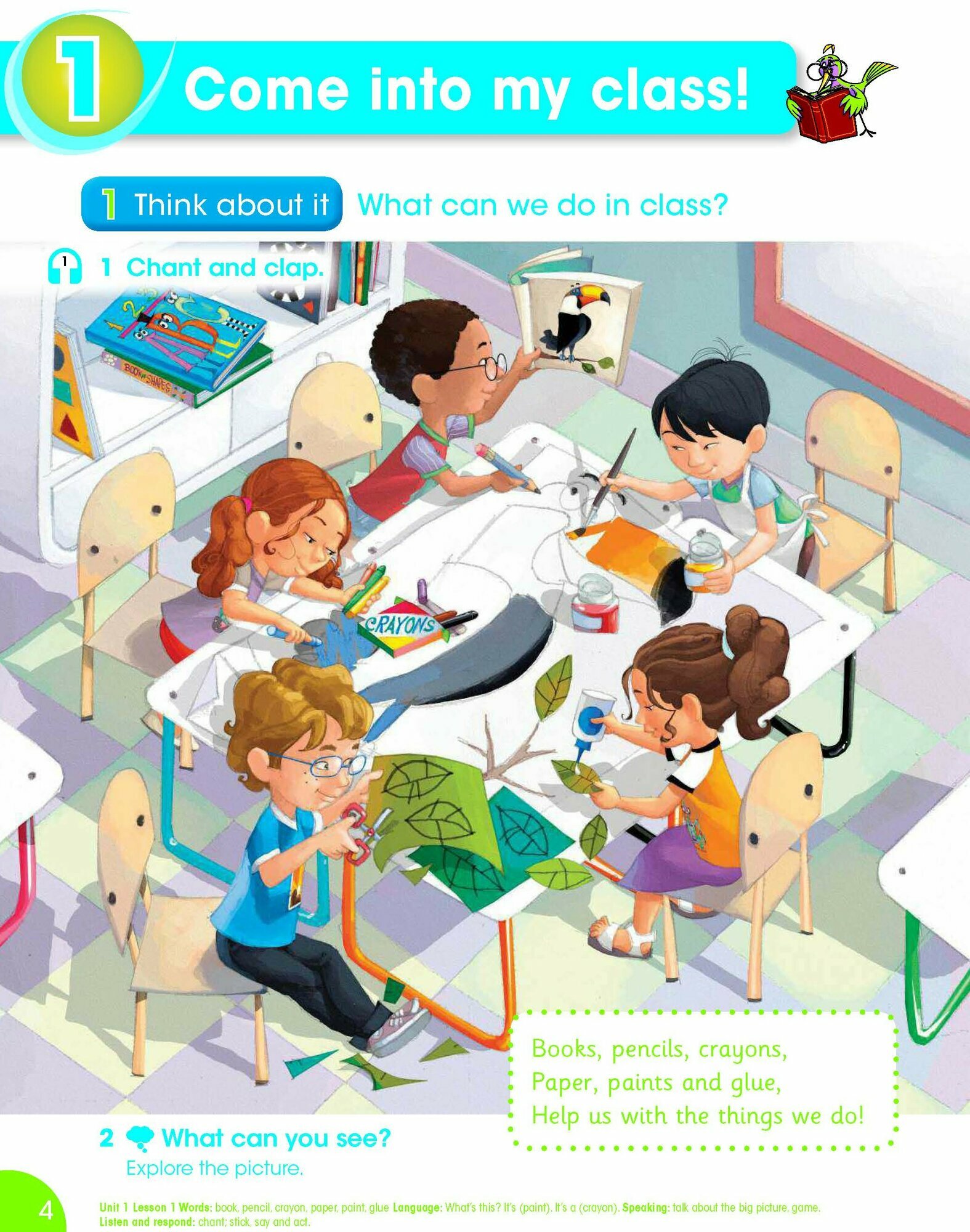 Материал учебника охватывает один семестр и разбит на три красочно оформленных модуля, представляющих одну из интересных для детей тем, в контексте которых с помощью песен, игр и творческих заданий они будут изучать новые слова, буквы и цифры, развивать языковые навыки (слушание, устная речь, ранние чтение и письмо) и критическое мышление. Также каждый модуль включает традиционную сказку или современную историю, знакомящую детей с ценностями, межпредметные уроки (CLIL) и творческий проект. Завершается учебник обзорным разделом, позволяющим повторить весь пройденный материал.