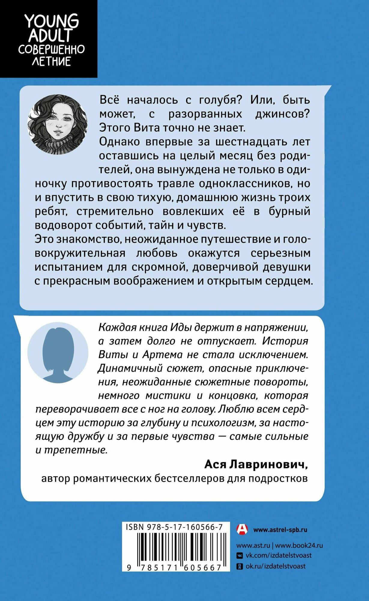 Все началось с голубя?Или, быть может, с разорванных джинсов?Этого Вита точно не знает.Однако впервые за шестнадцать лет оставшись на целый месяц без родителей, она вынуждена не только в одиночку противостоять травле одноклассников, но и впустить в свою тихую домашнюю жизнь троих ребят, стремительно вовлекших ее в бурный водоворот событий, тайн и чувств.Это знакомство, неожиданное путешествие и головокружительная любовь окажутся серьезным испытанием для скромной, доверчивой девушки с прекрасным воображением и открытым сердцем.