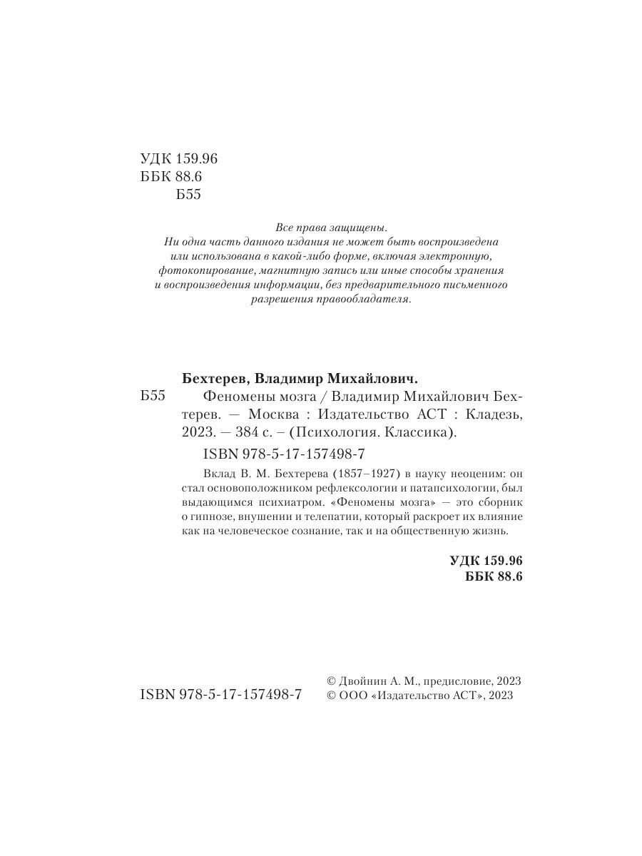 Книга: Феномены мозга (Владимир Бехтерев); Издательство АСТ, 2023