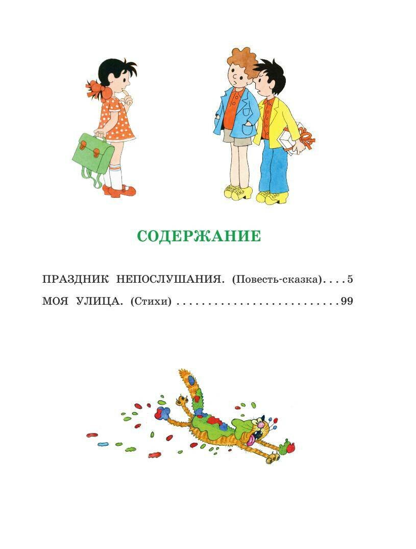 В книгу вошли два знаменитых произведения Сергея Михалкова: повесть-сказка "Праздник Непослушания" и стихотворение "Моя улица". На Праздник Непослушания мечтают попасть все дети в мире, ведь можно не учить уроки, целый день веселиться, играть с друзьями и есть мороженое. Но так ли это прекрасно, как кажется? Прочитайте и узнаете. А потом прочитайте великолепное стихотворение "Моя улица" и скорее выходите гулять и изучать всё, что есть на вашей улице. В книге яркие, необычные, притягивающие иллюстрации Германа Огородникова – мастера детской иллюстрации. Сам автор, Сергей Михалков, предложил художнику нарисовать иллюстрации к "Празднику Непослушания" и "Моей улице". Два великих классика создали для вас шедевр детской литературы, который вот уже многие годы радует мальчиков и девочек.