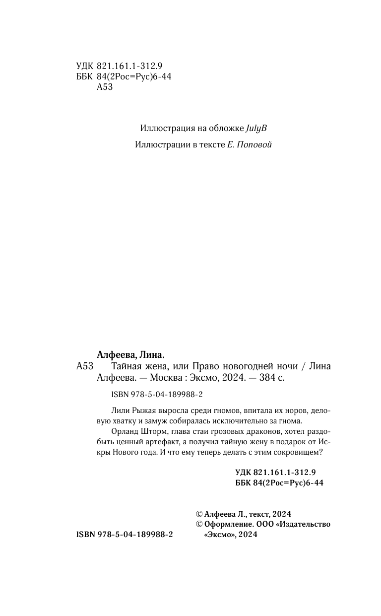 Тайная жена или Право новогодней ночи (Алфеева Лина); ООО "Издательство "Эксмо", 2023