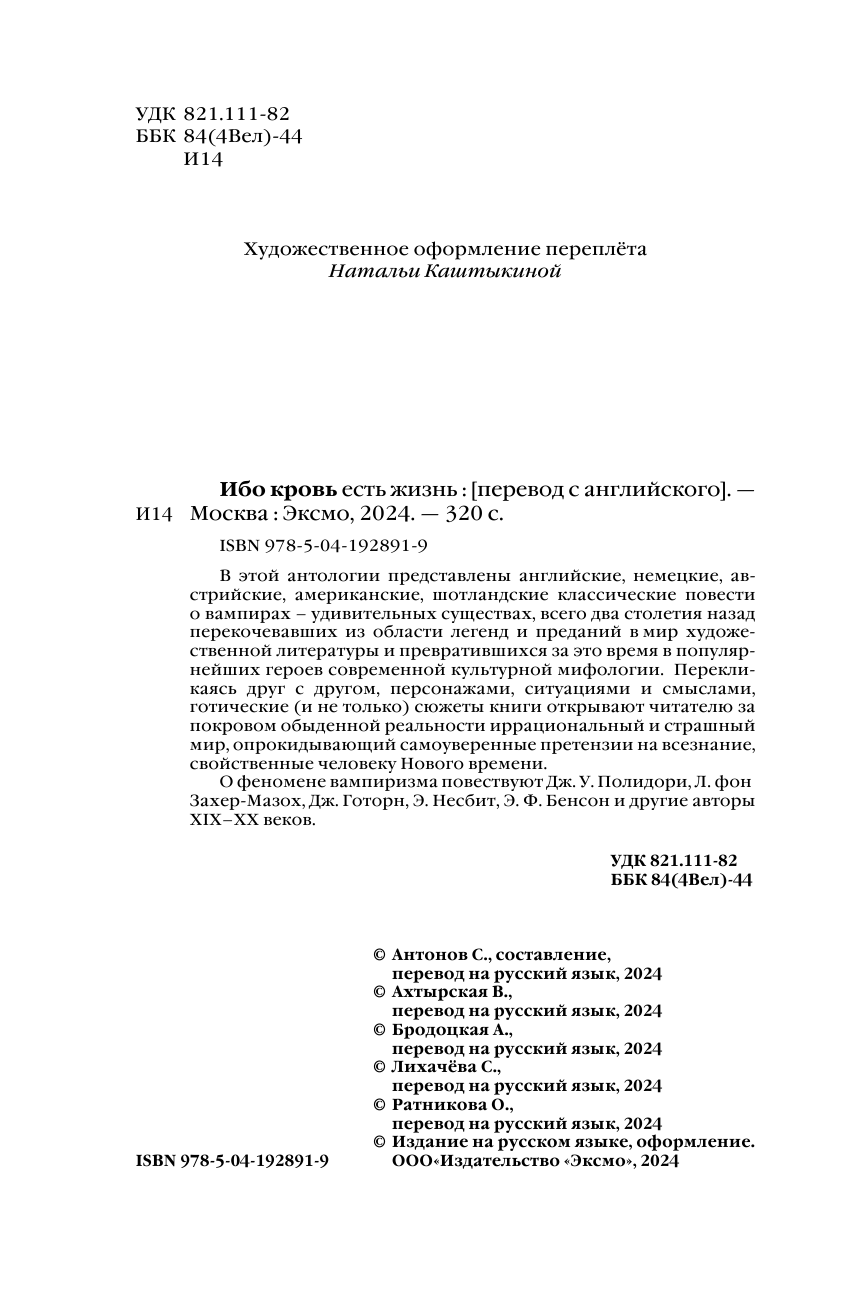 Книга: Ибо кровь есть жизнь (Леопольд фон Захер-Мазох, Эдит Несбит, Джон Уильям Полидори); Эксмо, Редакция 1, 2024