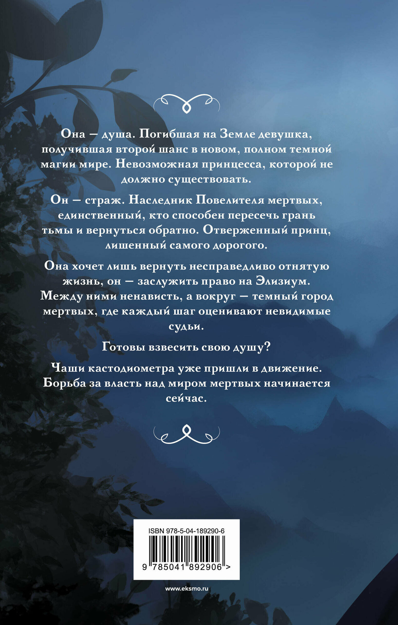 Она — душа. Погибшая на Земле девушка, получившая второй шанс в новом, полном темной магии мире. Невозможная принцесса, которой не должно существовать. Он — страж. Наследник Повелителя мертвых, единственный, кто способен пересечь грань тьмы и вернуться обратно. Отверженный принц, лишенный самого дорогого. Она хочет лишь вернуть несправедливо отнятую жизнь, он — заслужить право на Элизиум. Между ними ненависть, а вокруг — темный город мертвых, где каждый шаг оценивают невидимые судьи. Готовы взвесить свою душу? Чаши кастодиометра уже пришли в движение. Борьба за власть над миром мертвых начинается сейчас.