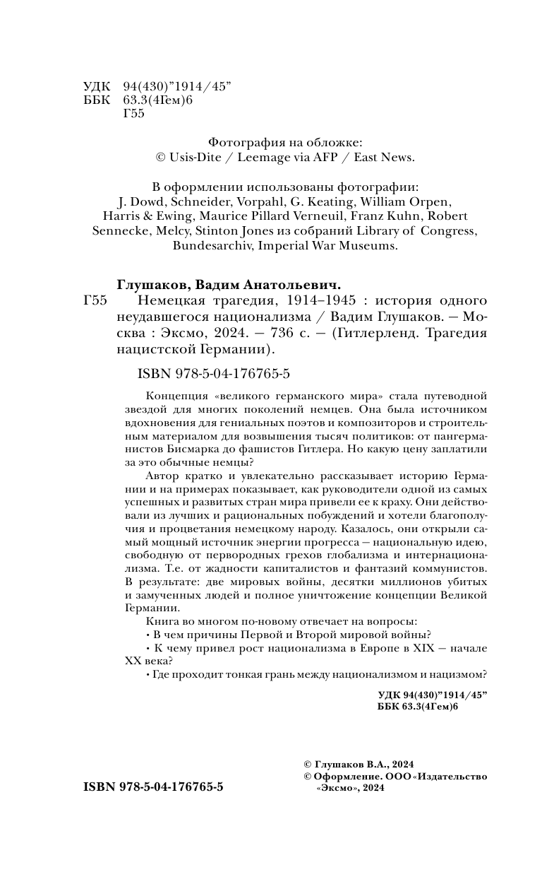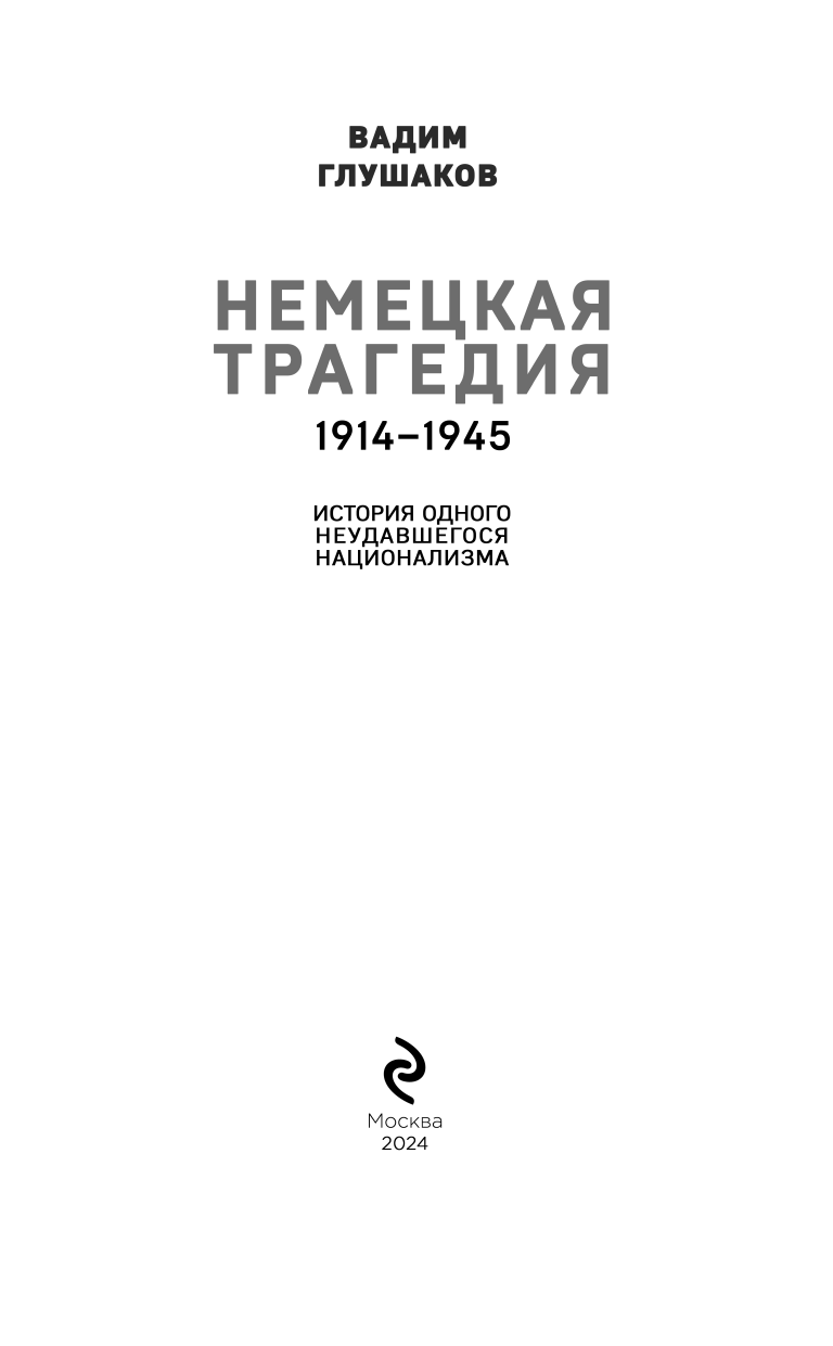 Немецкая трагедия. 1914-1945. История одного неудавшегося национализма (Вадим Глушаков); Эксмо, Редакция 1, 2023