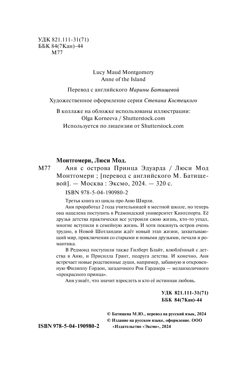 Аня с острова Принца Эдуарда (Люси Мод Монтгомери); Эксмо, Редакция 1, 2024