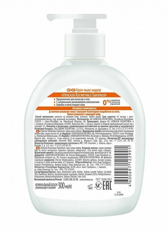Мыло жидкое Пантенол Невская Косметика 300 мл