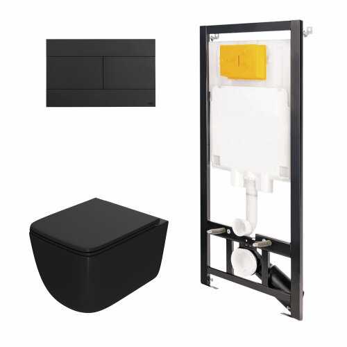 Комплект унитаза с инсталляцией Point Меркурий 886914SLO3+PN41831BM Черный матовый с сиденьем Микролифт и Черной матовой клавишей смыва
