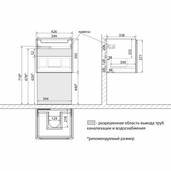 - Габариты корпуса тумбы (ШхВхГ): 426х392х354 мм.