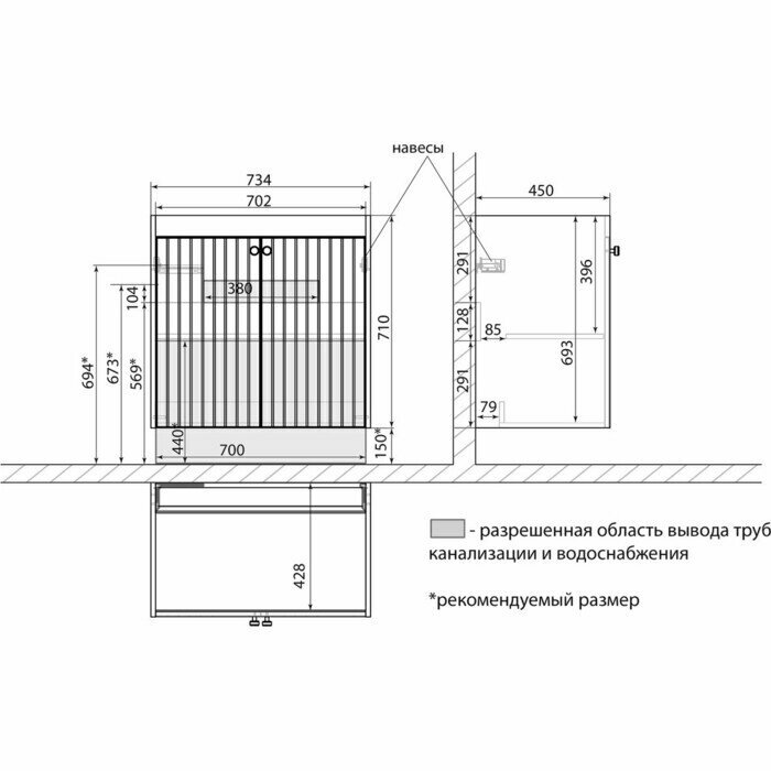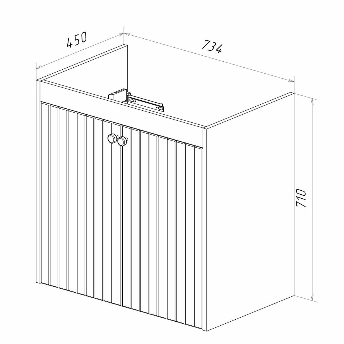 - Габариты корпуса тумбы (ШхВхГ): 734х710х450 мм.