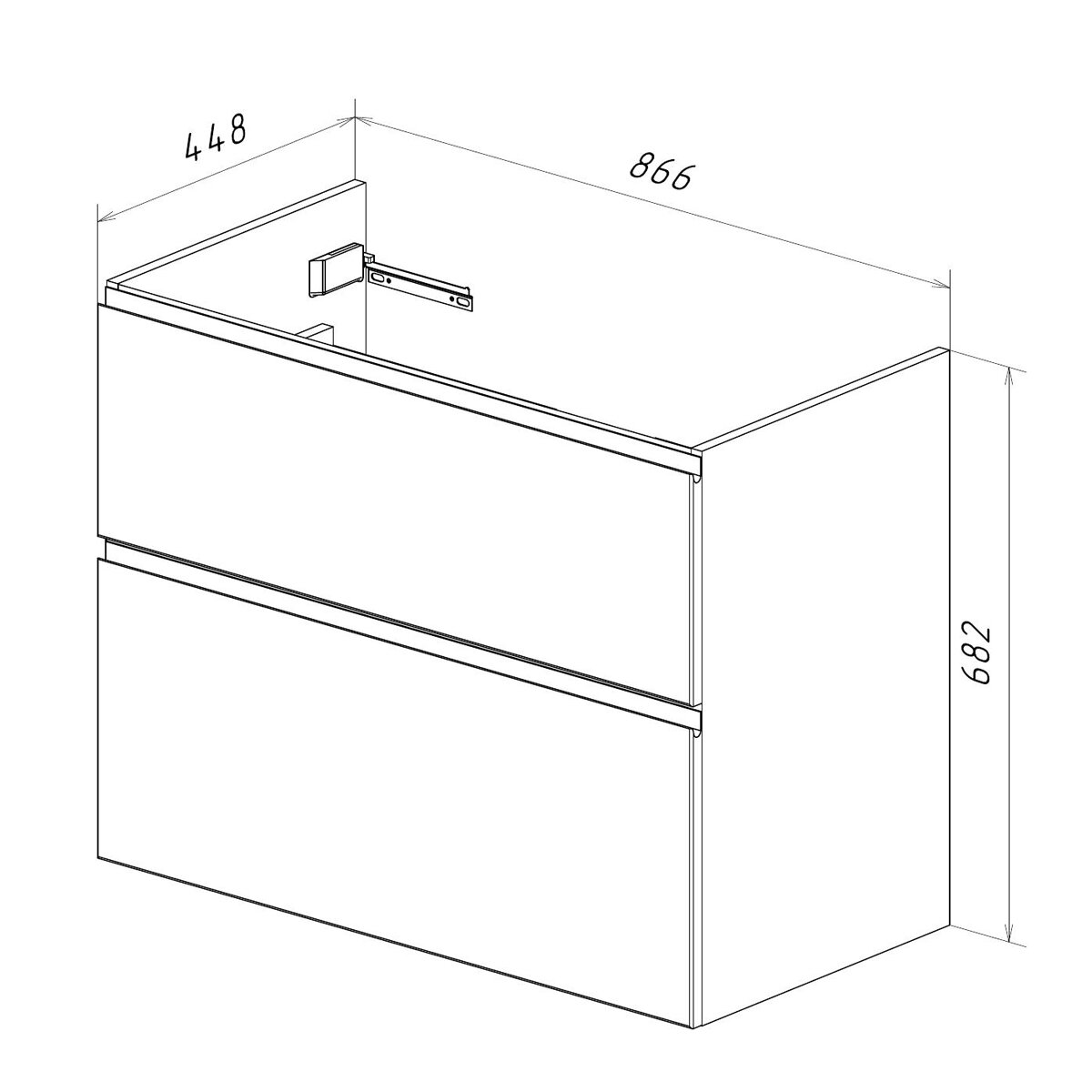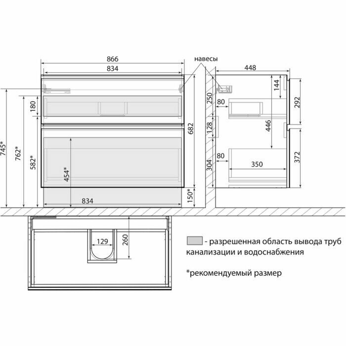 - Габариты корпуса тумбы (ШхВхГ): 866х682х448 мм.