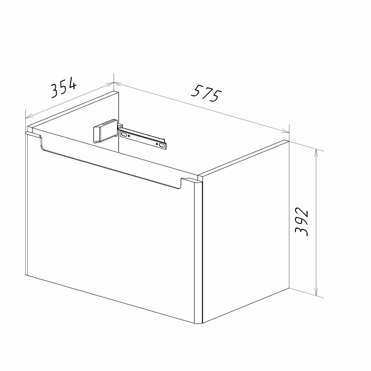 - Габариты корпуса тумбы (ШхВхГ): 575х392х354 мм.