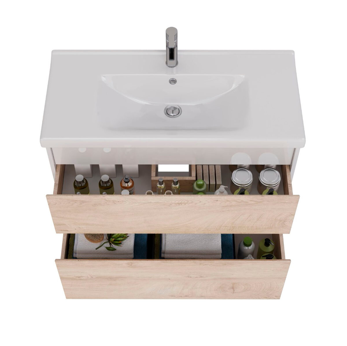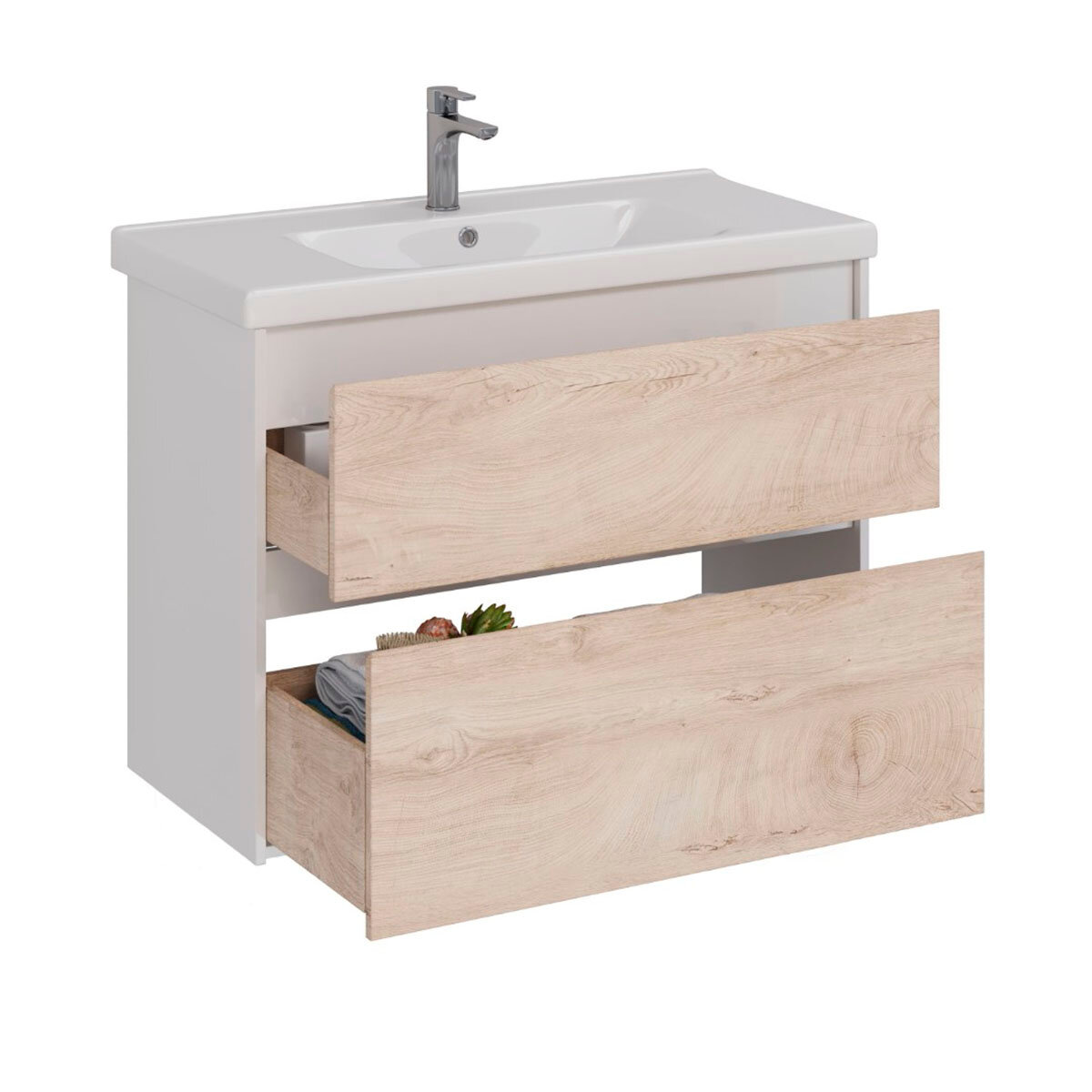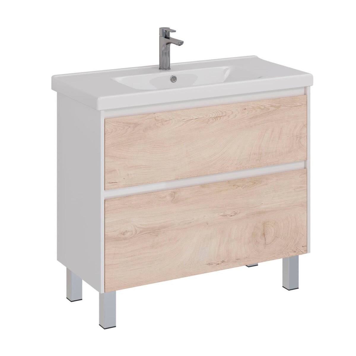 Тумба под раковину Lemark Combi 100 LM03C100T-dub подвесная Дуб кантри Белый глянец