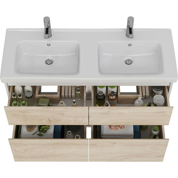 Тумба под раковину Lemark Combi 125 LM03C125T-dub подвесная Дуб кантри Белый глянец