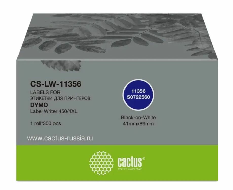 Этикетки Cactus сег.:89x41мм черный белый 300шт/рул Dymo Label Writer 450/4XL CS-LW-11356