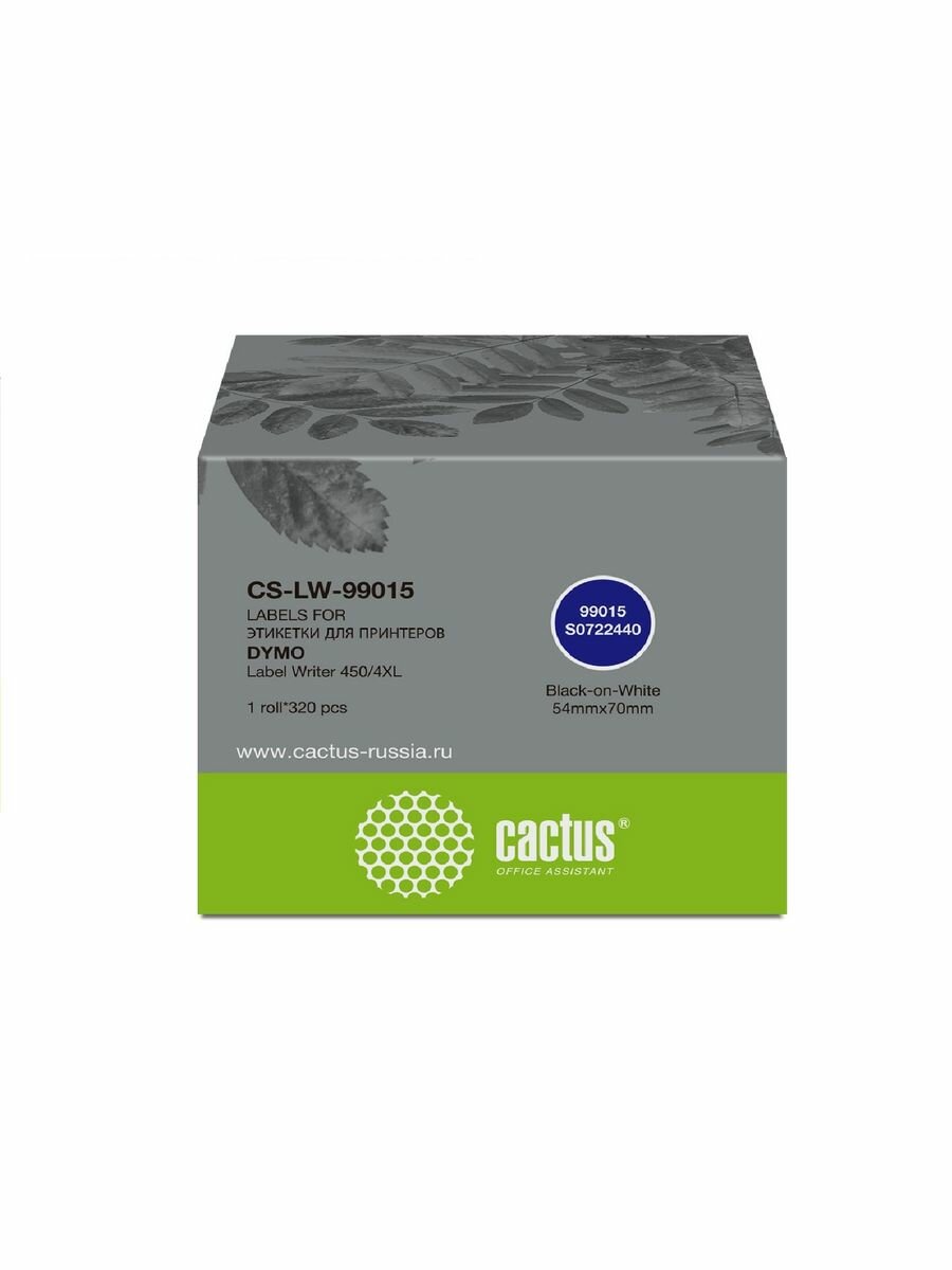 Этикетки Cactus сег.:70x54мм черный белый 320шт/рул Dymo Label Writer 450/4XL CS-LW-99015