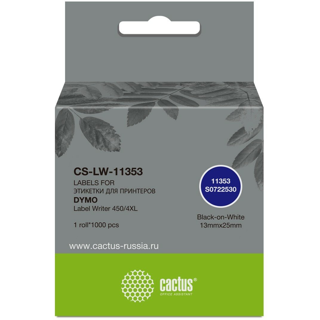 Этикетки Cactus сег.:25x13мм черный белый 1000шт/рул Dymo Label Writer 450/4XL CS-LW-11353