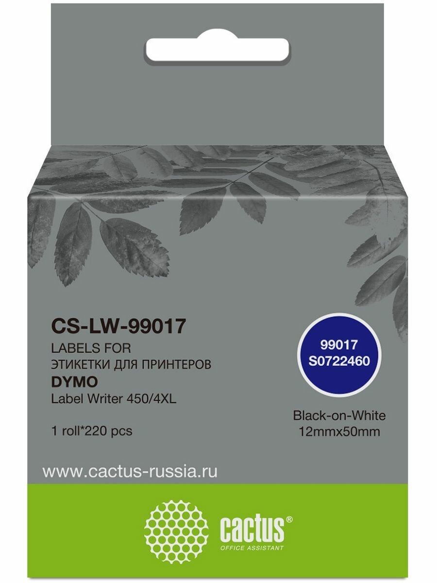 Этикетки Cactus сег.:50x12мм черный белый 220шт/рул Dymo Label Writer 450/4XL CS-LW-99017