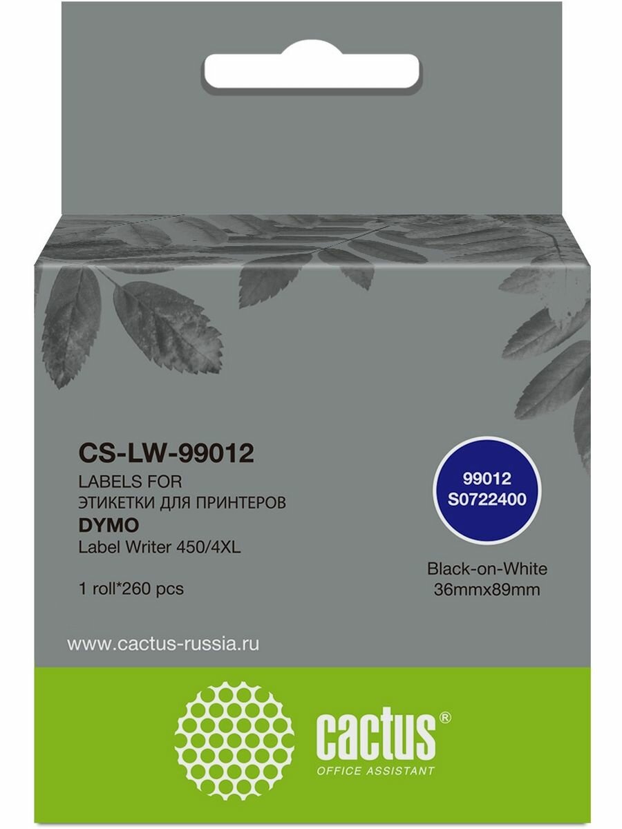Этикетки Cactus сег.:89x36мм черный белый 260шт/рул Dymo Label Writer 450/4XL CS-LW-99012