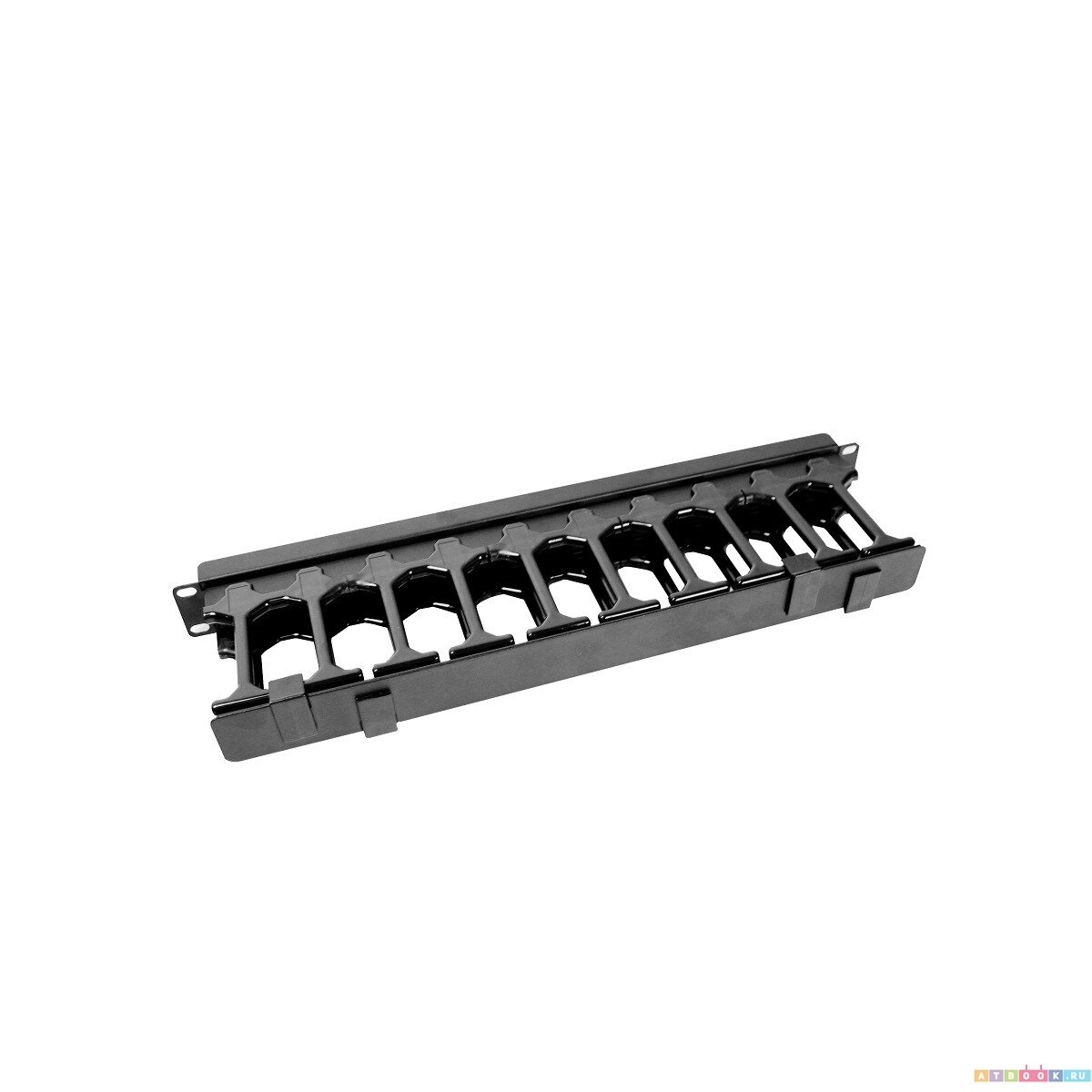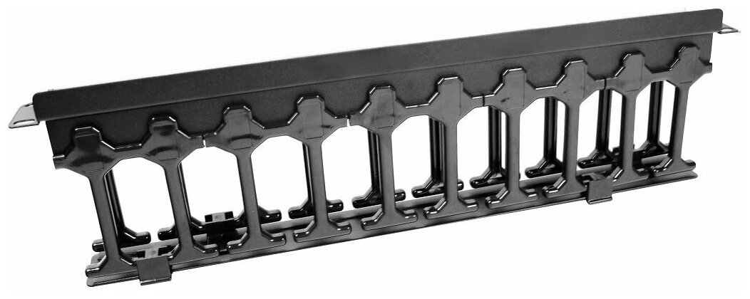 Горизонтальный кабельный органайзер с пластиковыми “пальцами” и металлической крышкой на защёлках предназначен для удобной организации коммутационного кабеля в шкафах.