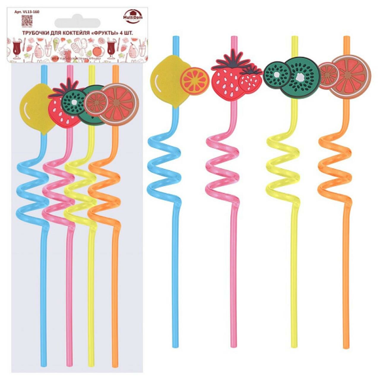 Трубочки для коктейля Мультидом Фрукты 4 шт