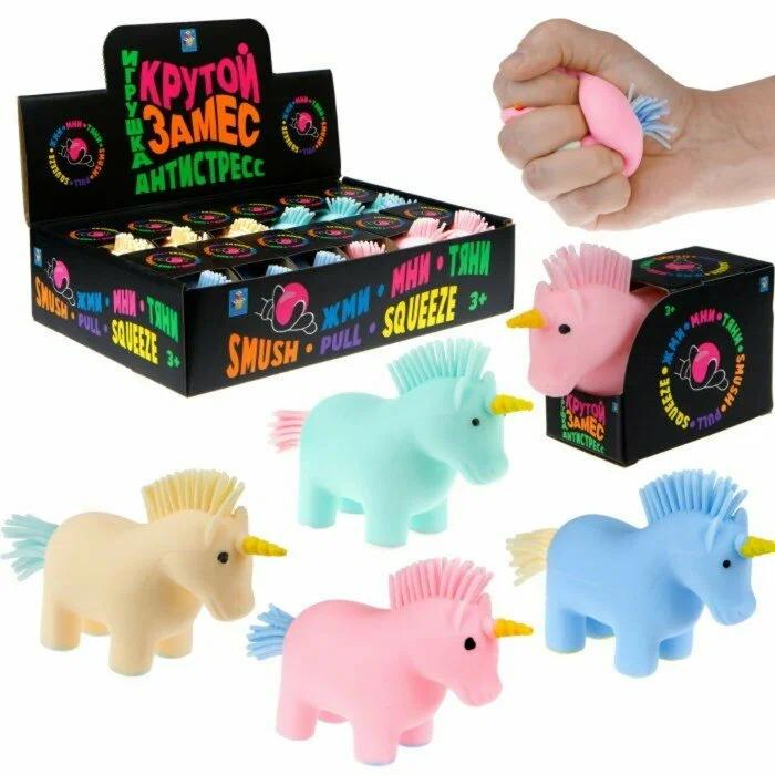 Детская игрушка-жмяка "Крутой замес" от бренда 1TOY представлена в форме единорога размером 12х6 см. в ассортименте в 4-х цветах: розовый, голубой, бирюзовый, бежевый. Игрушку можно мять, тянуть и сжимать, таким образом она будет развивать мелкую моторику ребенка, а также игрушка обладает антистресс-эффектом!