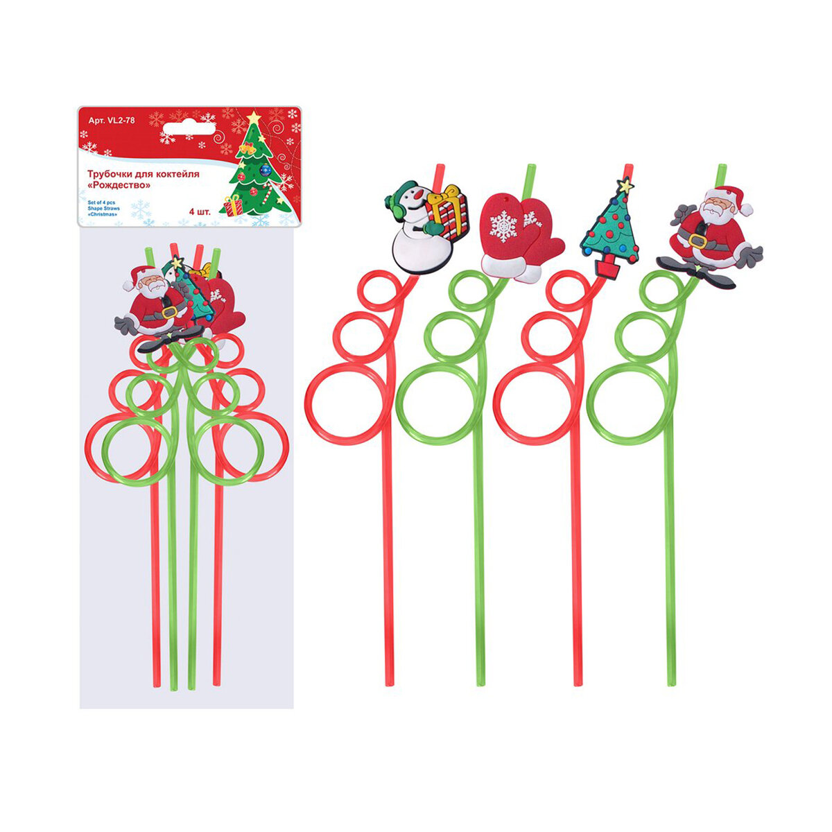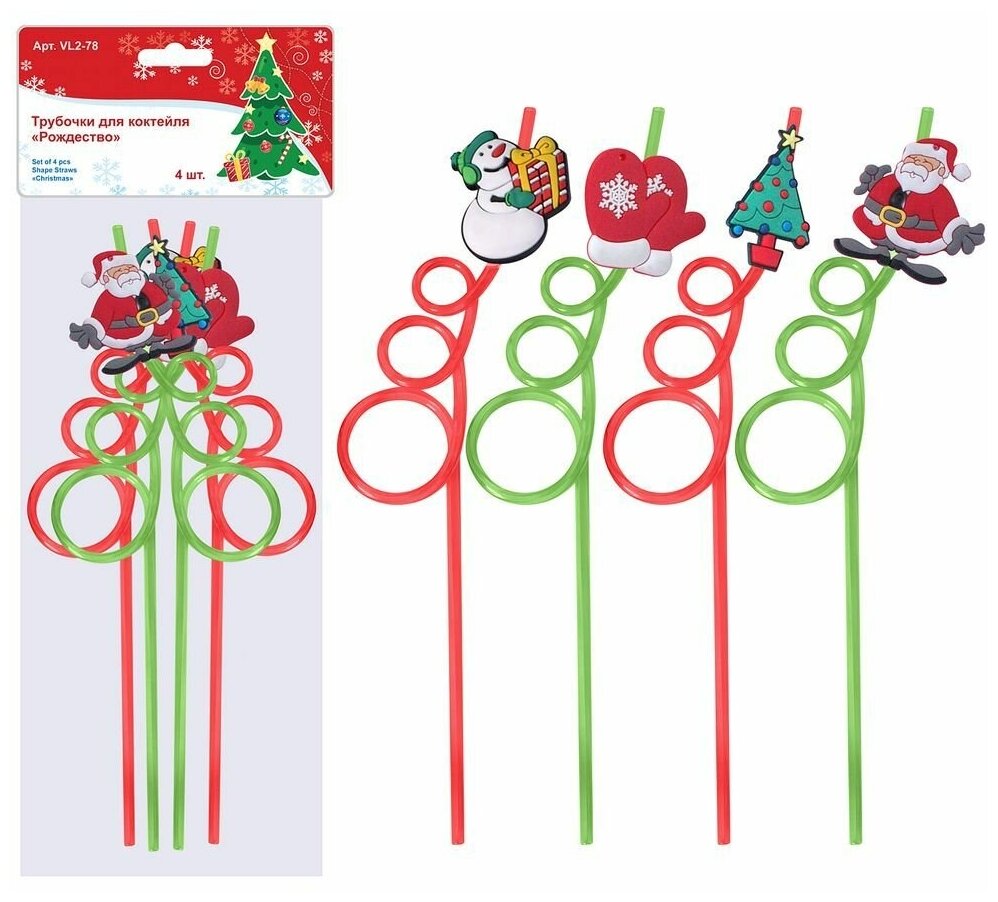 Трубочки для коктейля Мультидом Рождество 4 шт