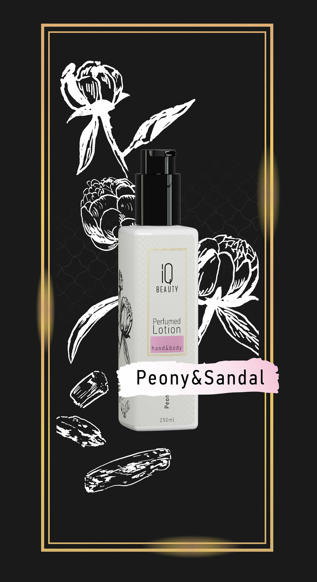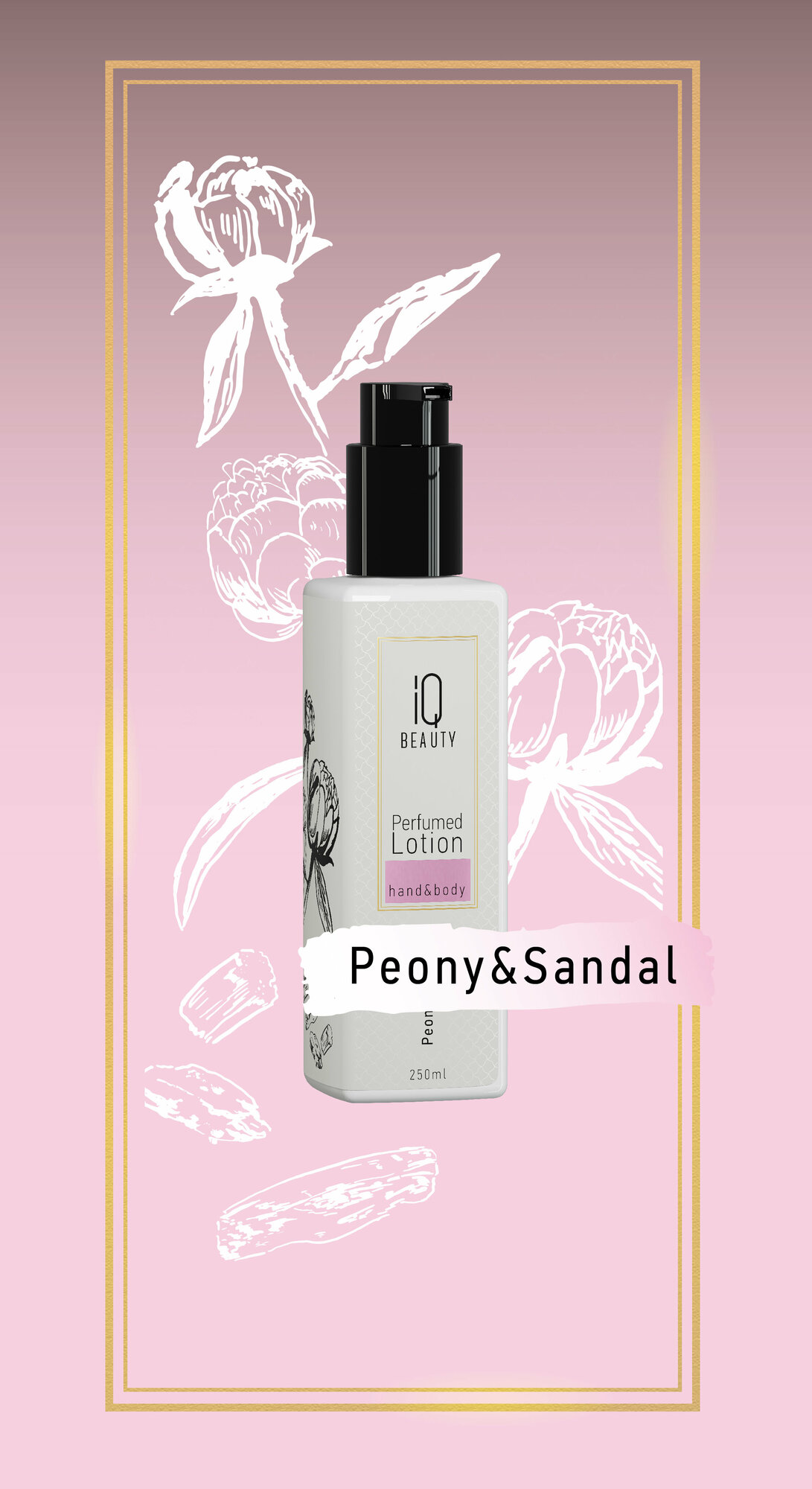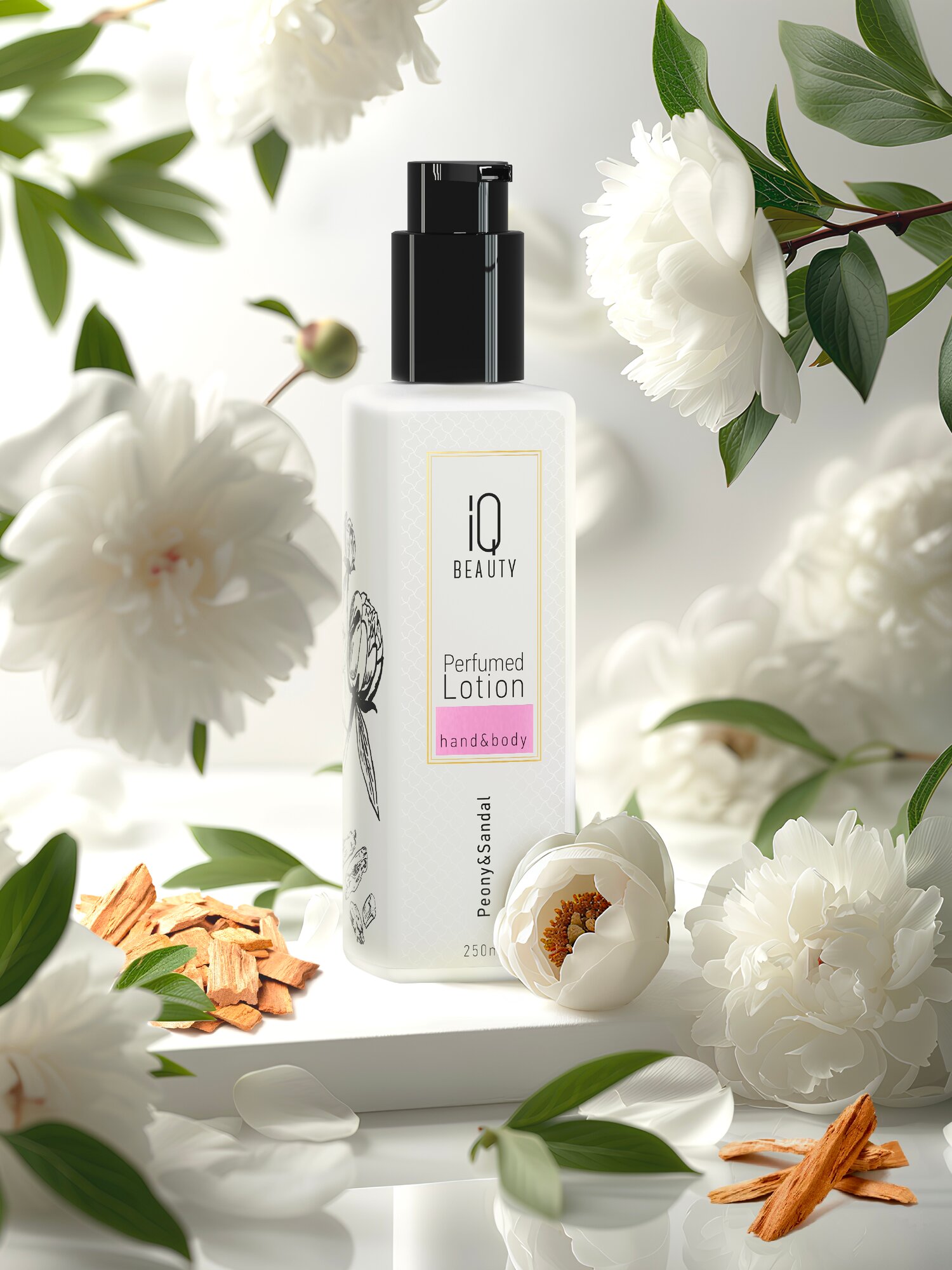 Perfumed lotion hand&body Peony&Sandal от IQ BEAUTY - премиум парфюм - уход с активными ингредиентами в формуле, который глубоко увлажняет и питает кожу 24 часа, оставляя роскошный аромат пиона и сандала.