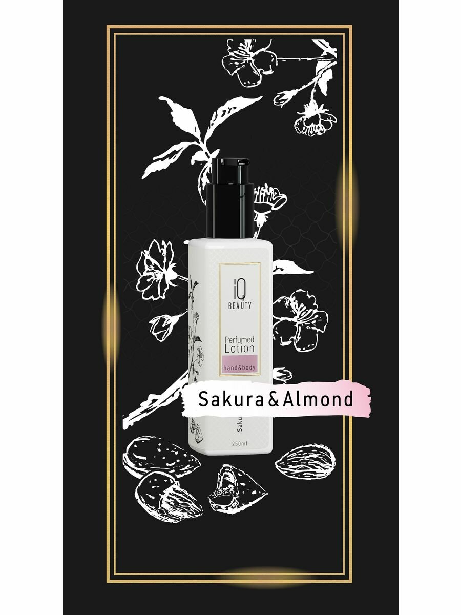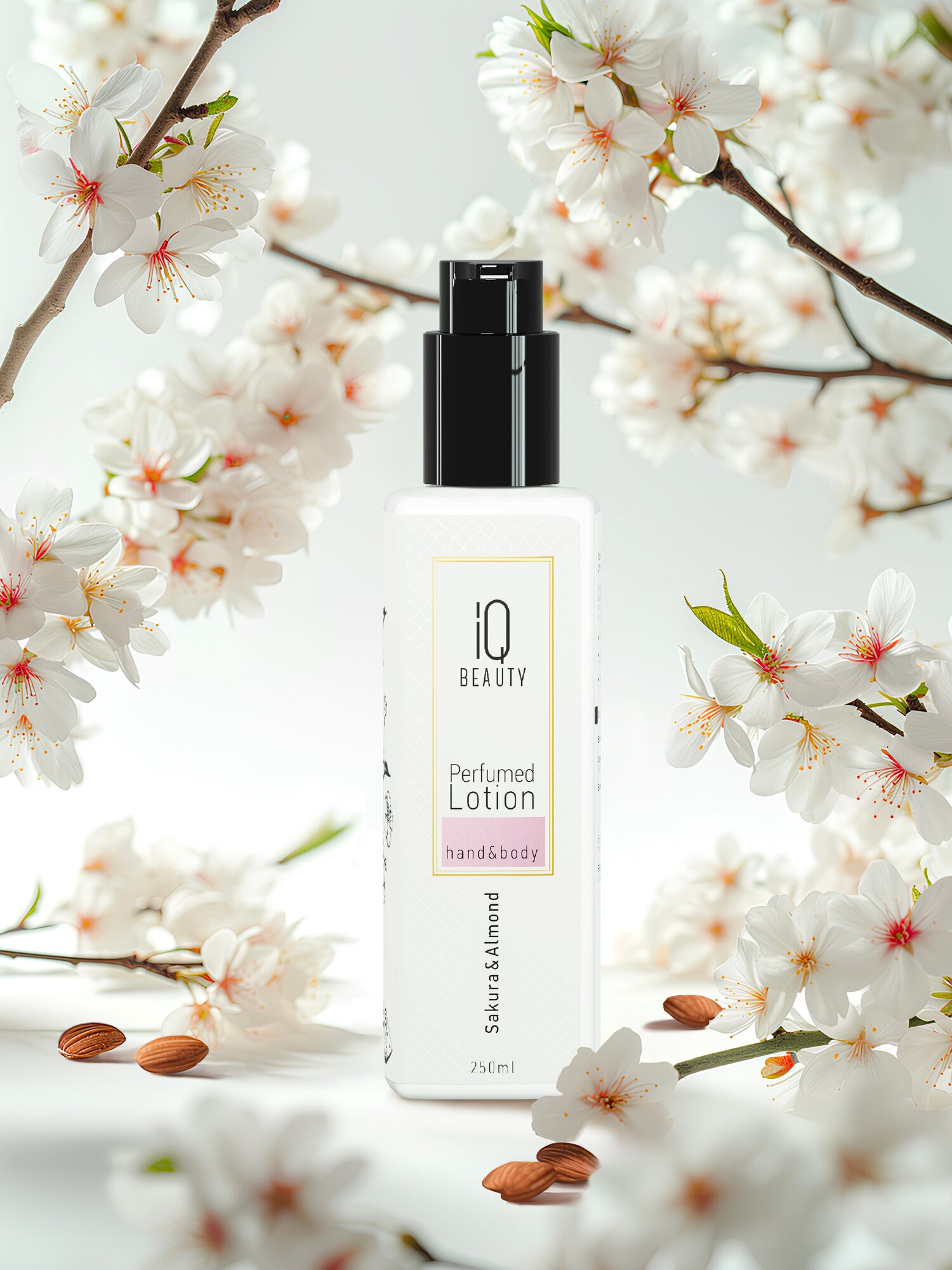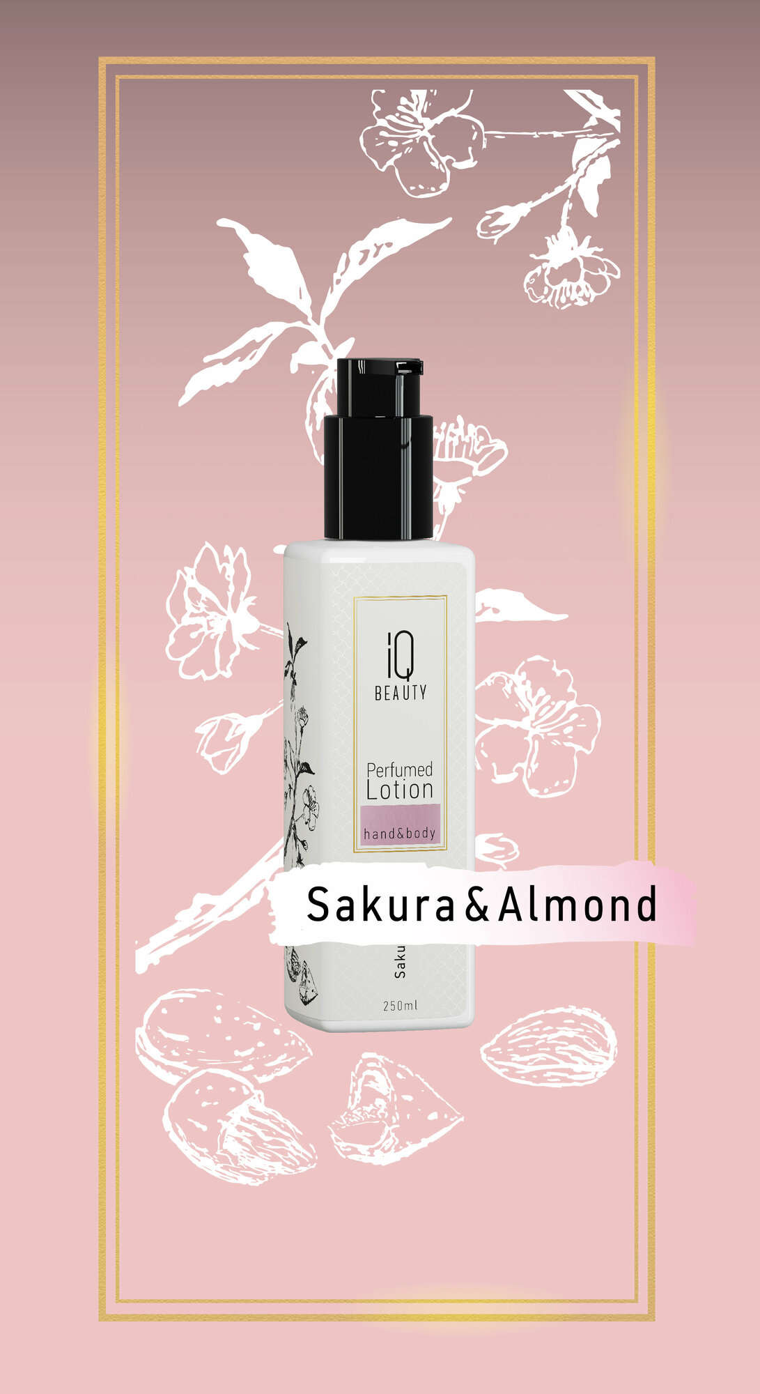 Perfumed lotion hand&body Sakura&Almond от IQ BEAUTY - премиум парфюм - уход с активными ингредиентами в формуле, который глубоко увлажняет и питает кожу 24 часа, оставляя роскошный аромат сакуры и миндаля.